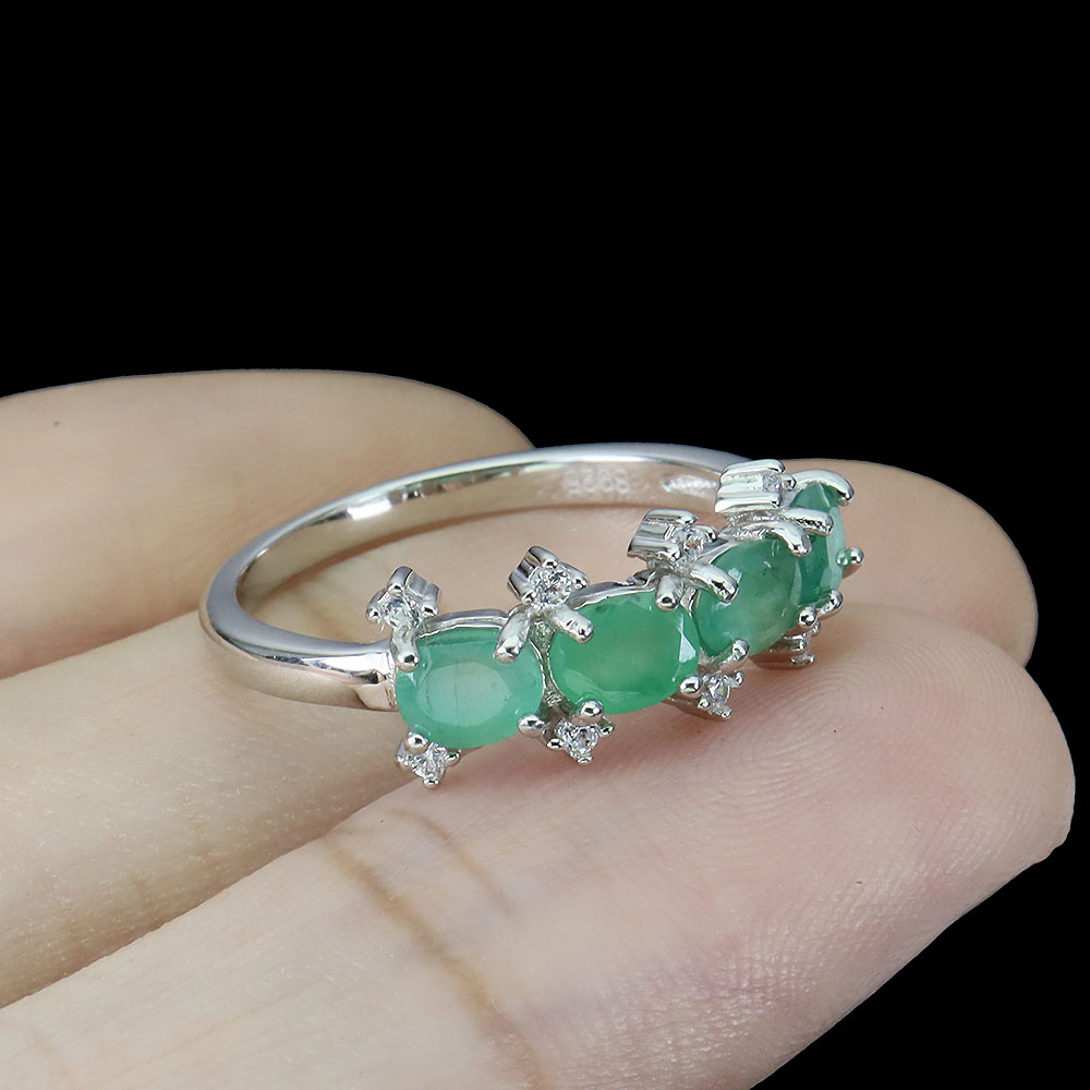 Unheated Oval Green Emerald 5x4mm Simulated Cz 925 Sterling Silver Ring Size 8.5