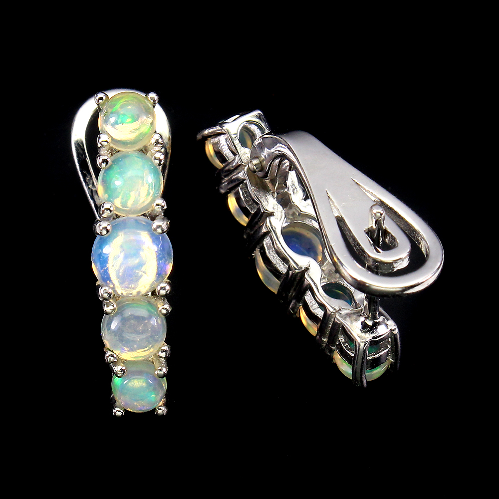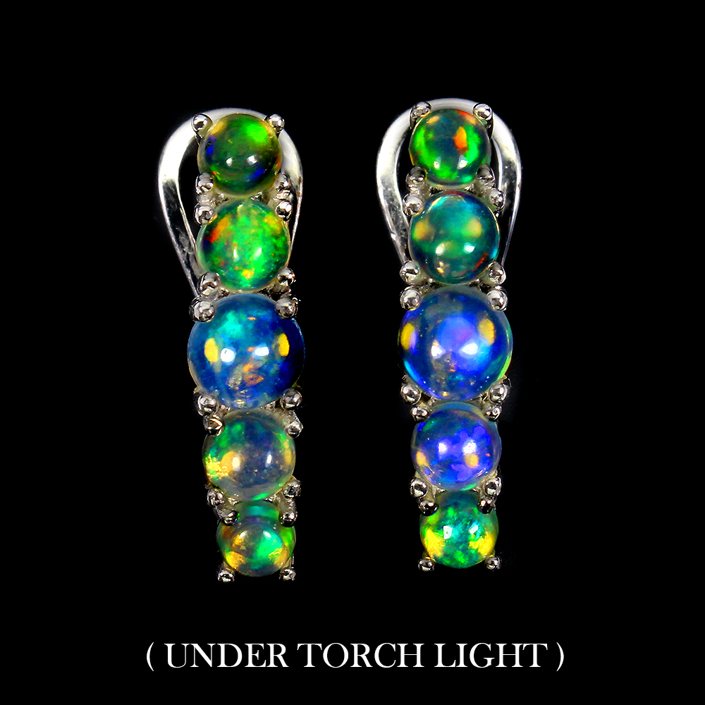 Unheated Round Fire Opal Rainbow Full Flash 5mm 925 Sterling Silver Earrings