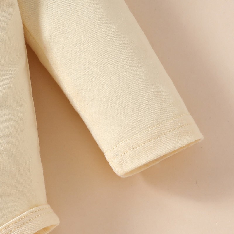 Long sleeve with ruffle deco, expandable shoulder is easy to wear, press buttons are convenient to change diaper.