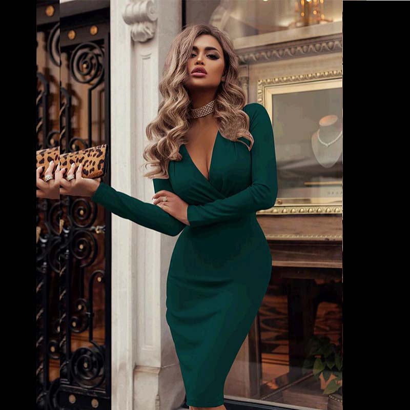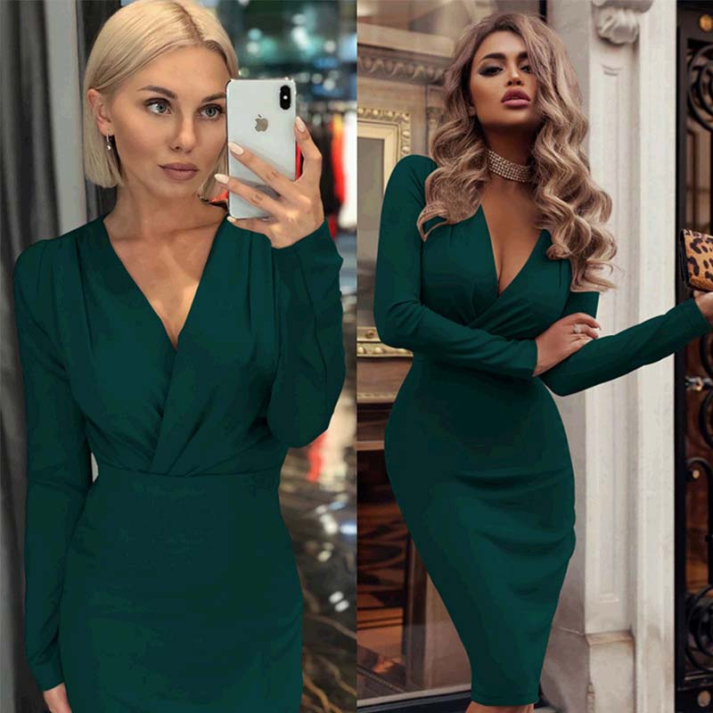 Party Cocktail Club V Neck Long Sleeve Evening Casual Mini Dress Womens Bodycon