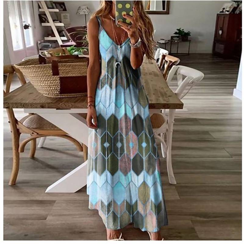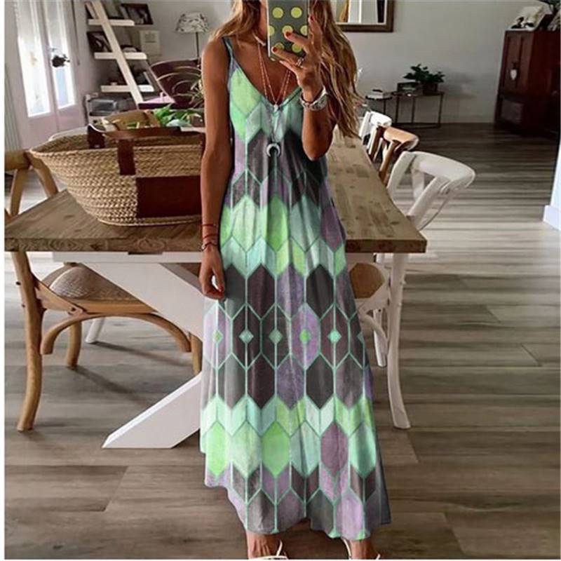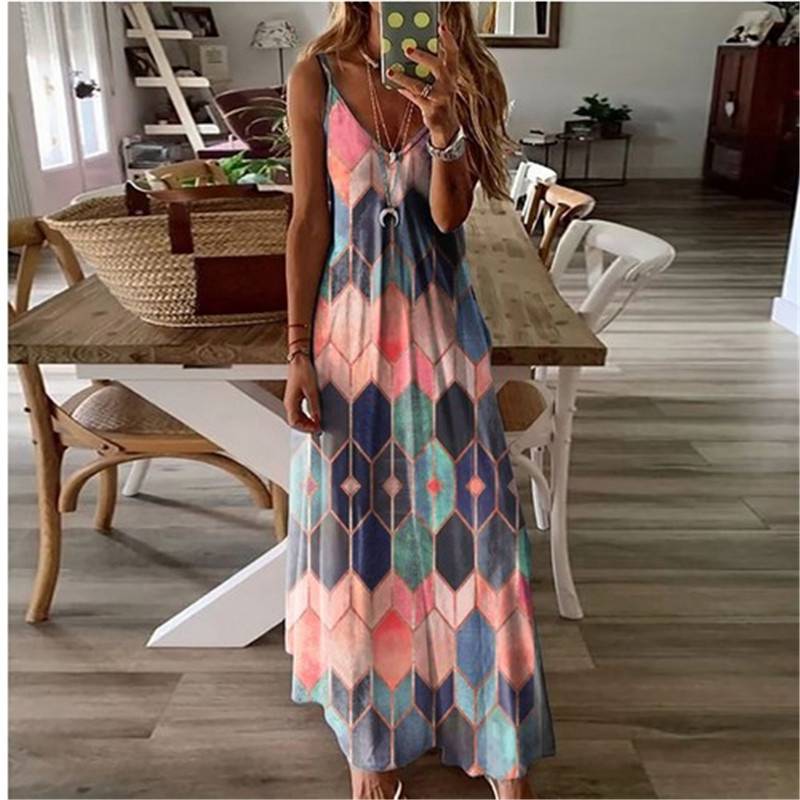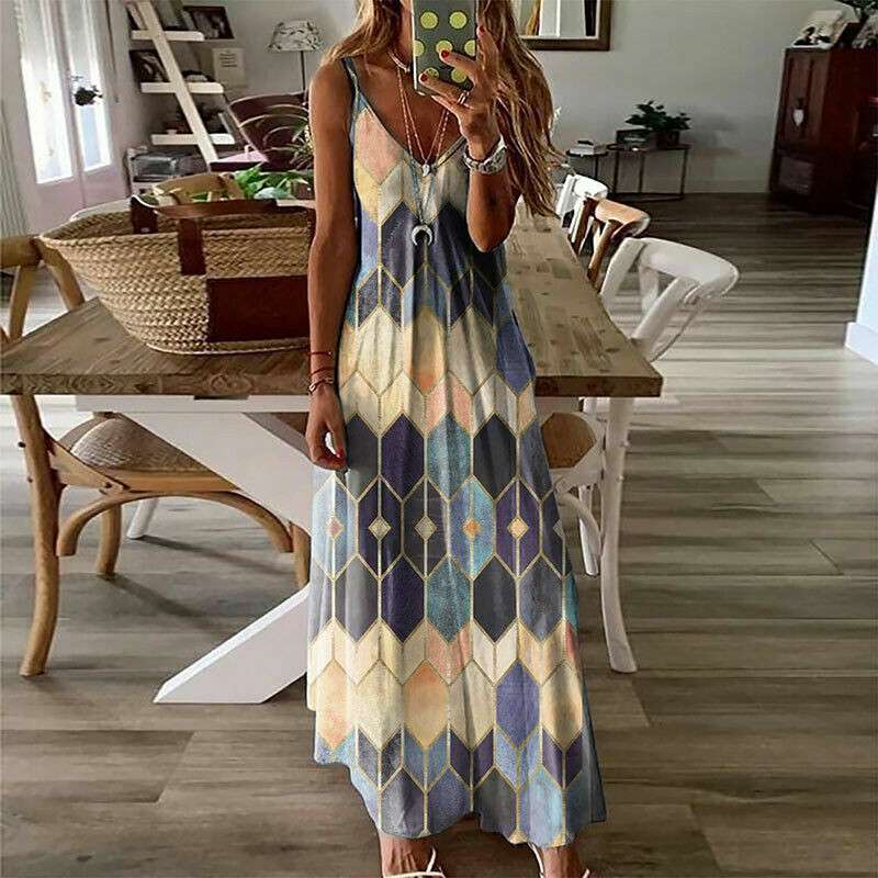 Women Summer Long Dress Ladies Boho Beach Holiday Maxi Dress Size 6-22