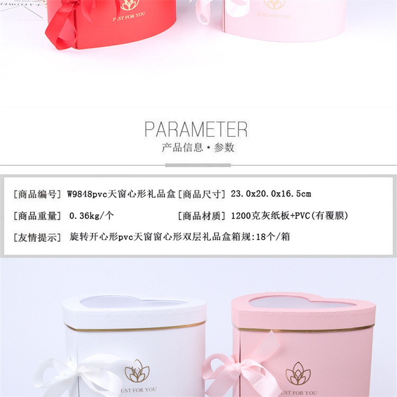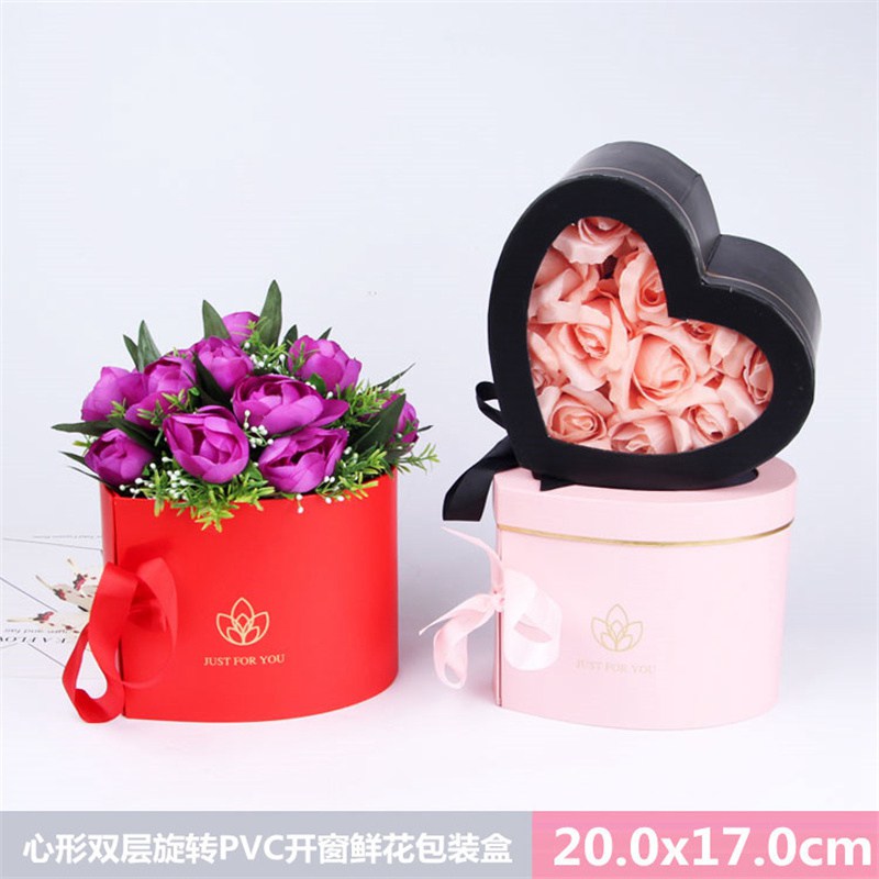 Spot Heart-Shaped Double-Layer Rotating PVC Window Flower Box Valentine's Day Heart-Shaped Flower Soap Flower Gift Box.