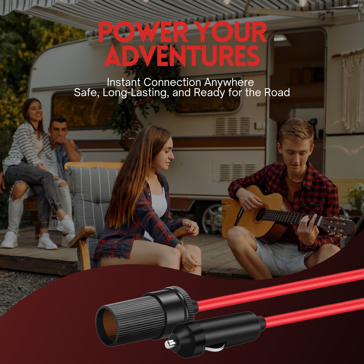 The TNP Cigarette Lighter Extension Cord is a game-changer for on-the-go power needs, perfect for various vehicles, including cars, RVs, trucks, and boats. This versatile 15-foot cigarette lighter car extension cord effortlessly bridges the gap between your power source and various electrical devices, such as tire pumps, vacuum cleaners, coolers, and fridges. Our cigarette lighter plug extension design focuses on functionality and safety, featuring heavy-grade wiring, quality connectors, and a 5A inline fuse to prevent overheating and short circuits. The 12v extender cord's robust construction, with the wire encased in a heavy-duty shell, ensures exceptional electrical conductivity and high resistance to damage, guaranteeing reliability and durability. Easy to set up, it's as simple as plugging into your vehicle's cigarette lighter socket, connecting your device, and powering up. Whether on a family road trip, managing tasks on a boat, or setting up camp in your RV, the TNP Cigarette Lighter Adapter Extension Cord is an essential tool, making power accessibility convenient, safe, and hassle-free.Feature:
