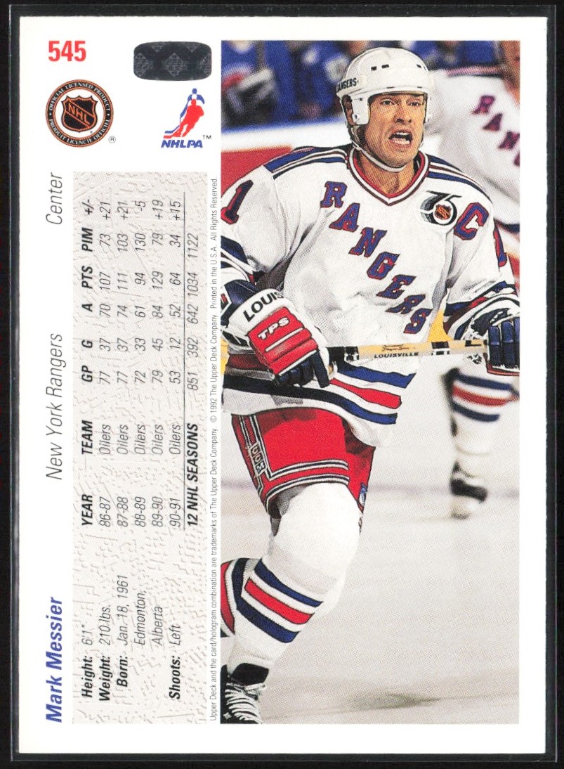 | 1991-92 Upper Deck Mark Messier New York Rangers #545 | ||||||||||||||||