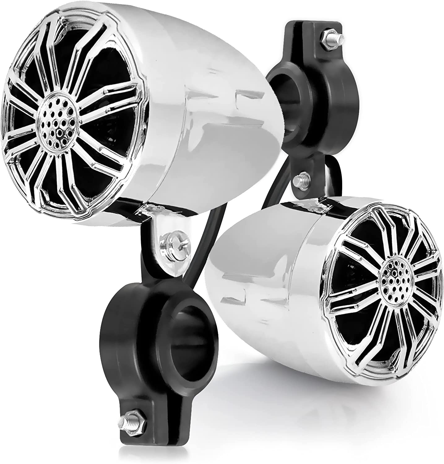 • 2.25" SPEAKERS: 10W marine grade off-road speaker system is what you need to listen to high-quality audio on your motorcycle, ATV, UTV, 4x4, Jeep or other outdoor vehicles. Includes two 2.25" passive long excursion woofer off-road speakers. The speakers feature marine grade IP-X5 waterproof construction w/weatherproof and water-resistant housing perfect for extreme water sports use.