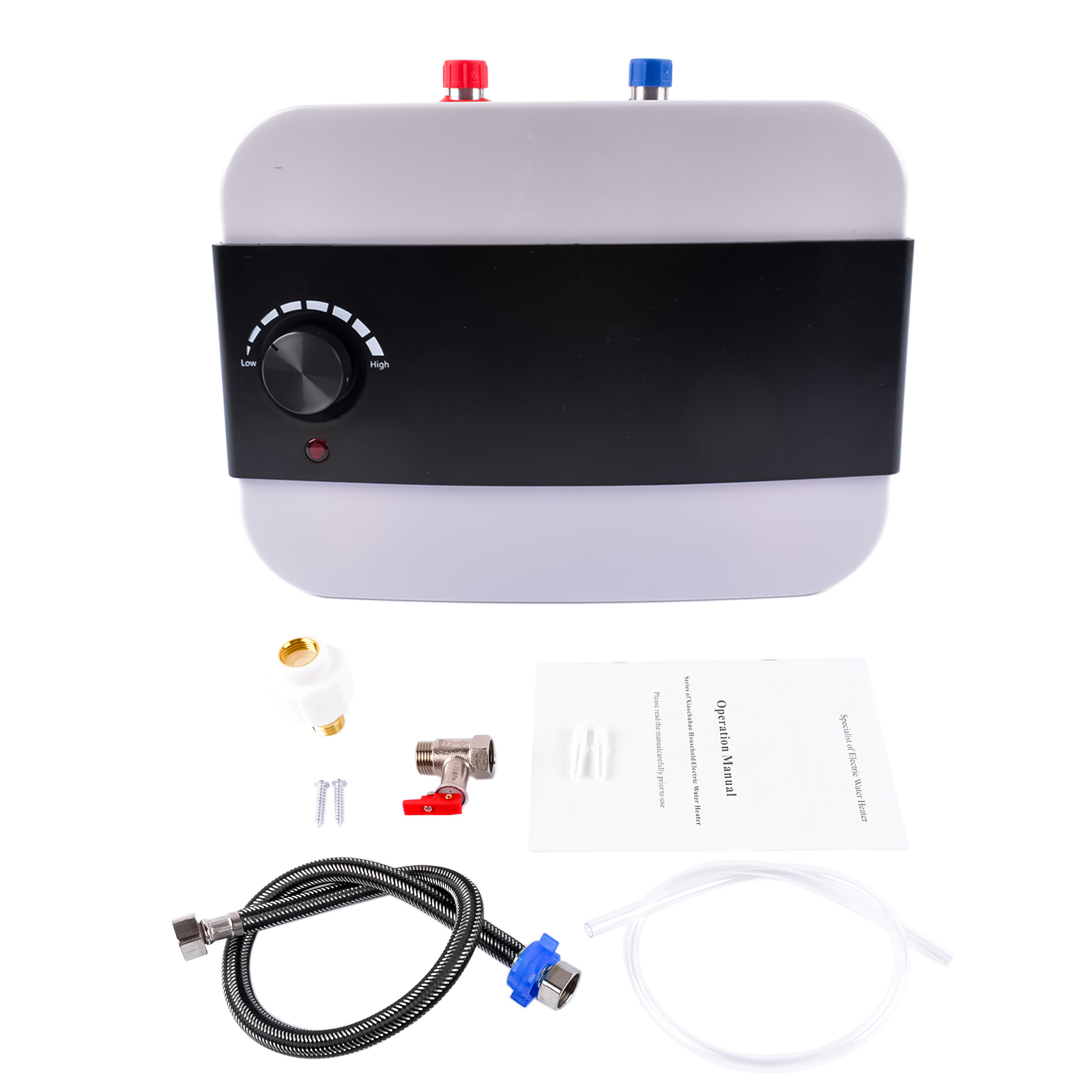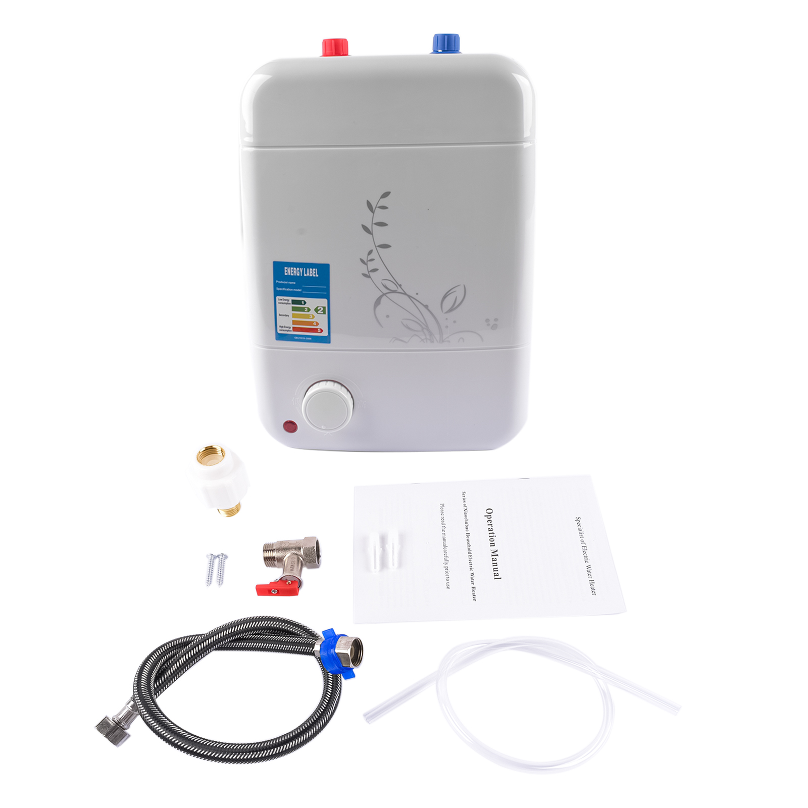 ✯ 8L Druckwassererhitzer unabhängiger Kaltwassereinlass (blau) und Warmwasserauslass (rot). Es wird empfohlen, diesen Warmwasserbereiter unter der Spüle zu installieren, beide sind aus 304 Edelstahl, kein Rost und keine Leckage. Dieser Kessel ist hochtemperaturbeständig, hocheffiziente Heizungsrohr, niedriger Energieverbrauch, große Kapazität Warmwasserbereiter, sofortiger Warmwasserausfluss, Wassertemperatur kann eingestellt werden zwischen: 30-75 °C.