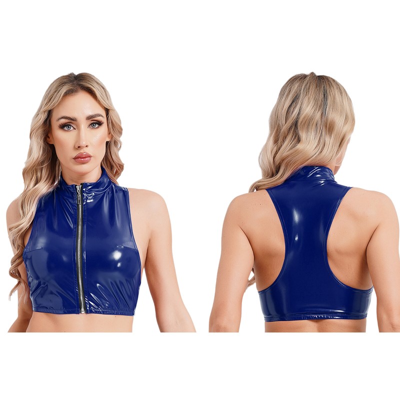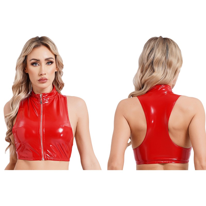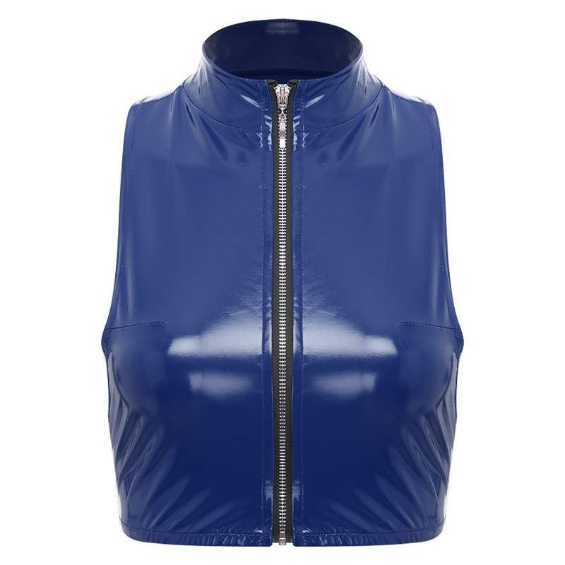 Designed with stand collar, sleeveless, front zipper, elastic band at bottom, solid color and slim fit, crop top makes you very stylish.