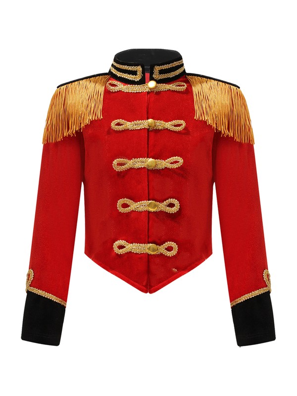 Long sleeve, stand collar jacket is designed with tassel shoulder, button down closure.