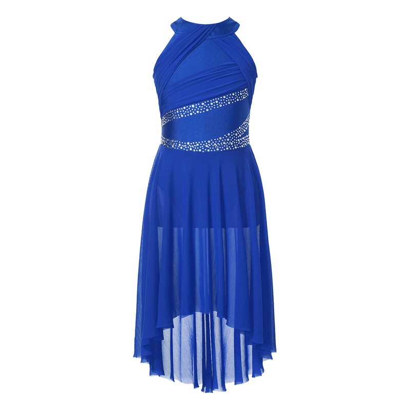 Designed with sleeveless, mock neck and back hidden zipper. Perfect dance dress brings a stunning look for girl.