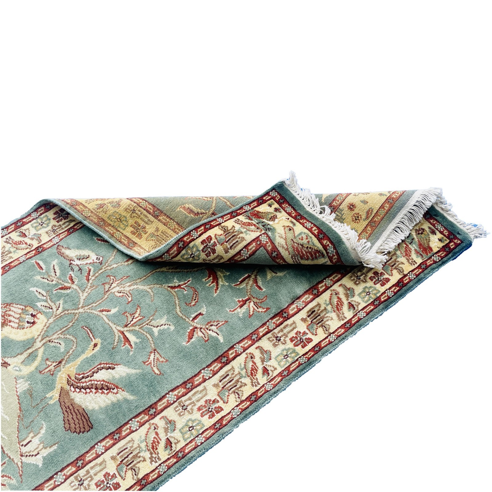 Al Ahmedani Linen Tree of Life Birds Rectangle Hand Knotted Wonderful Design Area Rug Home Decor Wool Silk Indoor Carpet (4.3 x 2.5)'. For the perfect combination of unique, beautiful style and high-quality durability, the attention to detail on these beautiful contemporary rugs is noticed as soon as you lay eyes on the carpet. The rug appears dull when viewed from one side, and shiny from the other side. Please view the picture at the bottom to see the bright side of the rug. This rug can help brighten up a room if you do not get much sunlight. Simply put the bright side facing the seating area and it will make the room appear surprisingly bright. Wonderful design with multi-color, easily compatible with most home decor. Blended color schemes match well with all styles of furniture and art. Give your home an elegant touch with this area rug. Great for any decor, it adds texture to the floor and complements any decor. 100% Genuine Hand Knotted-Rug not hand tufted.
