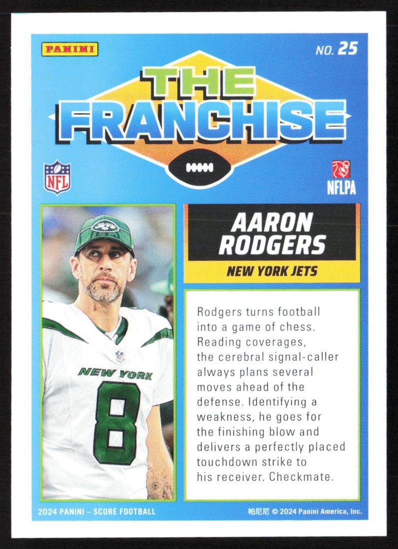 | 2024 Score The Franchise Aaron Rodgers New York Jets #25 | ||||||||||||||||||