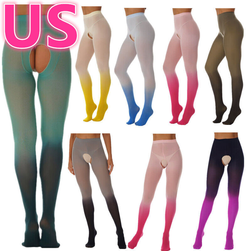 US Women Sheer Pantyhose Footed Tight Hollow Out Open Crotch Suspender Stocking