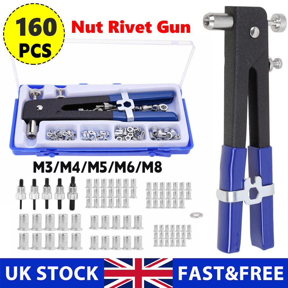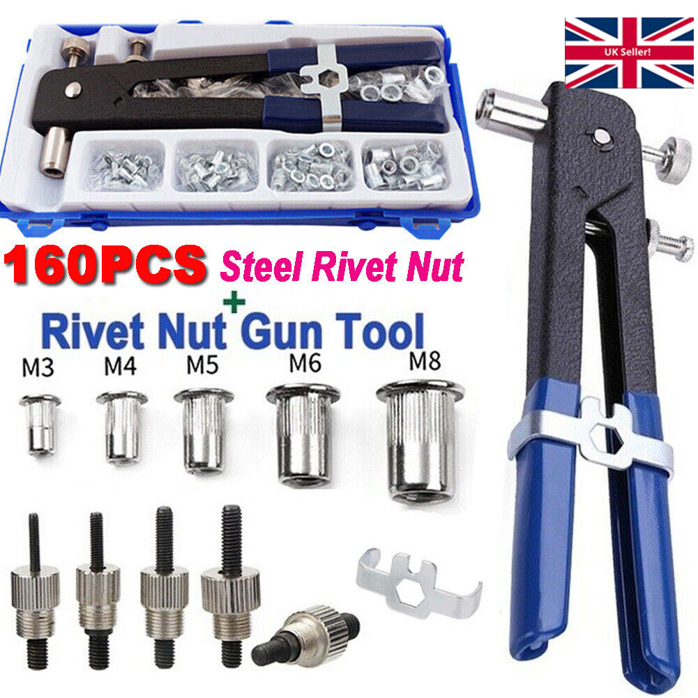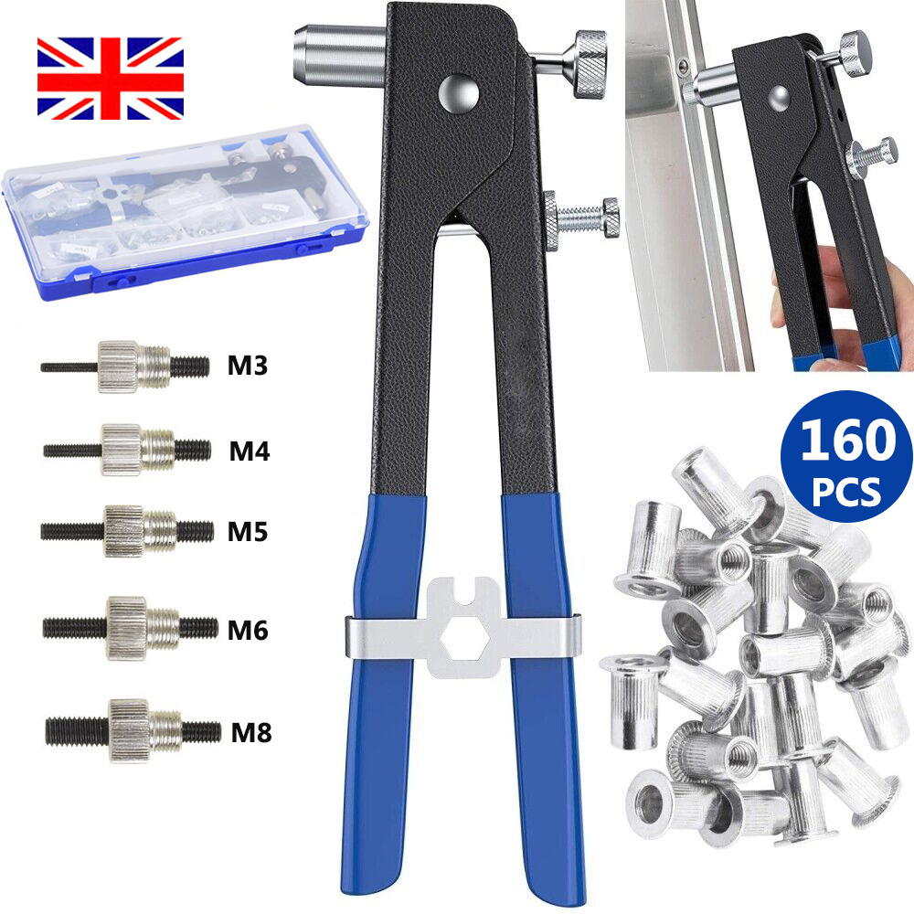 160x Threaded Blind Rivet Nut M3-M8 Insert Tool Hand Riveter Rivnut Nutsert Kit