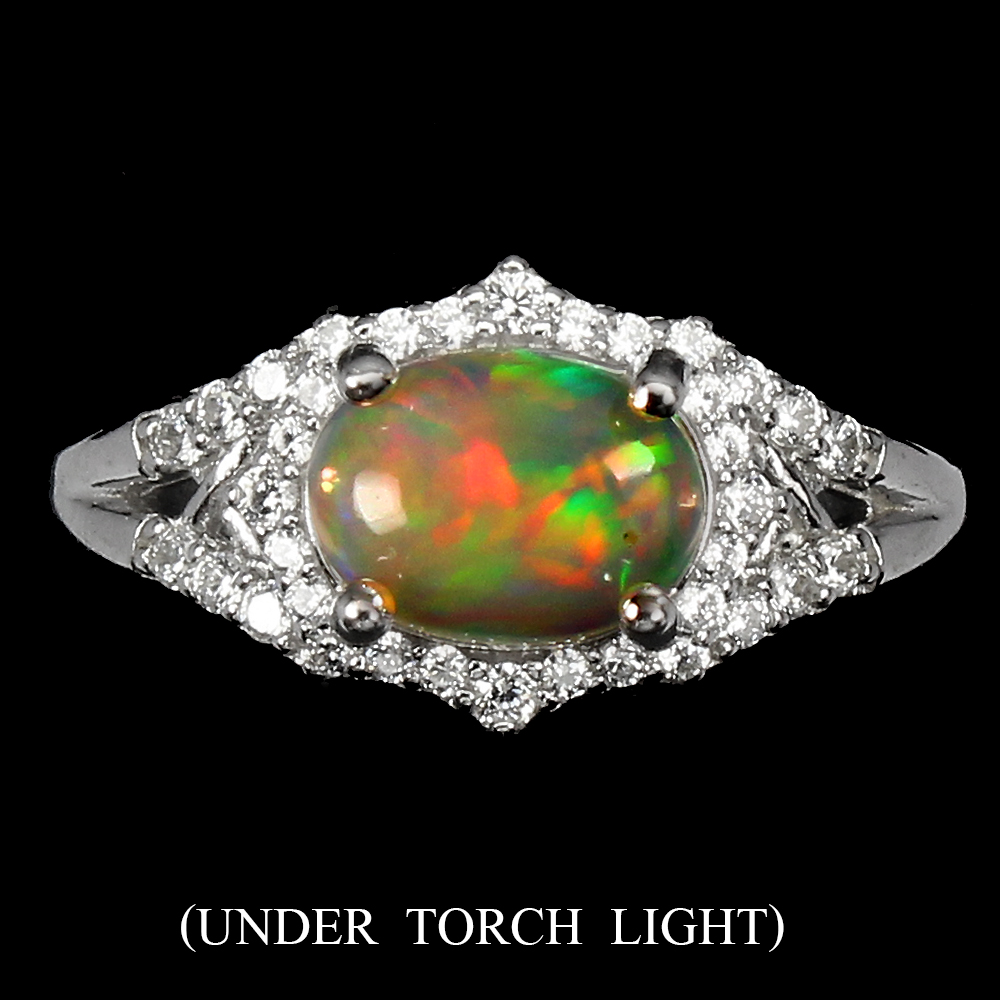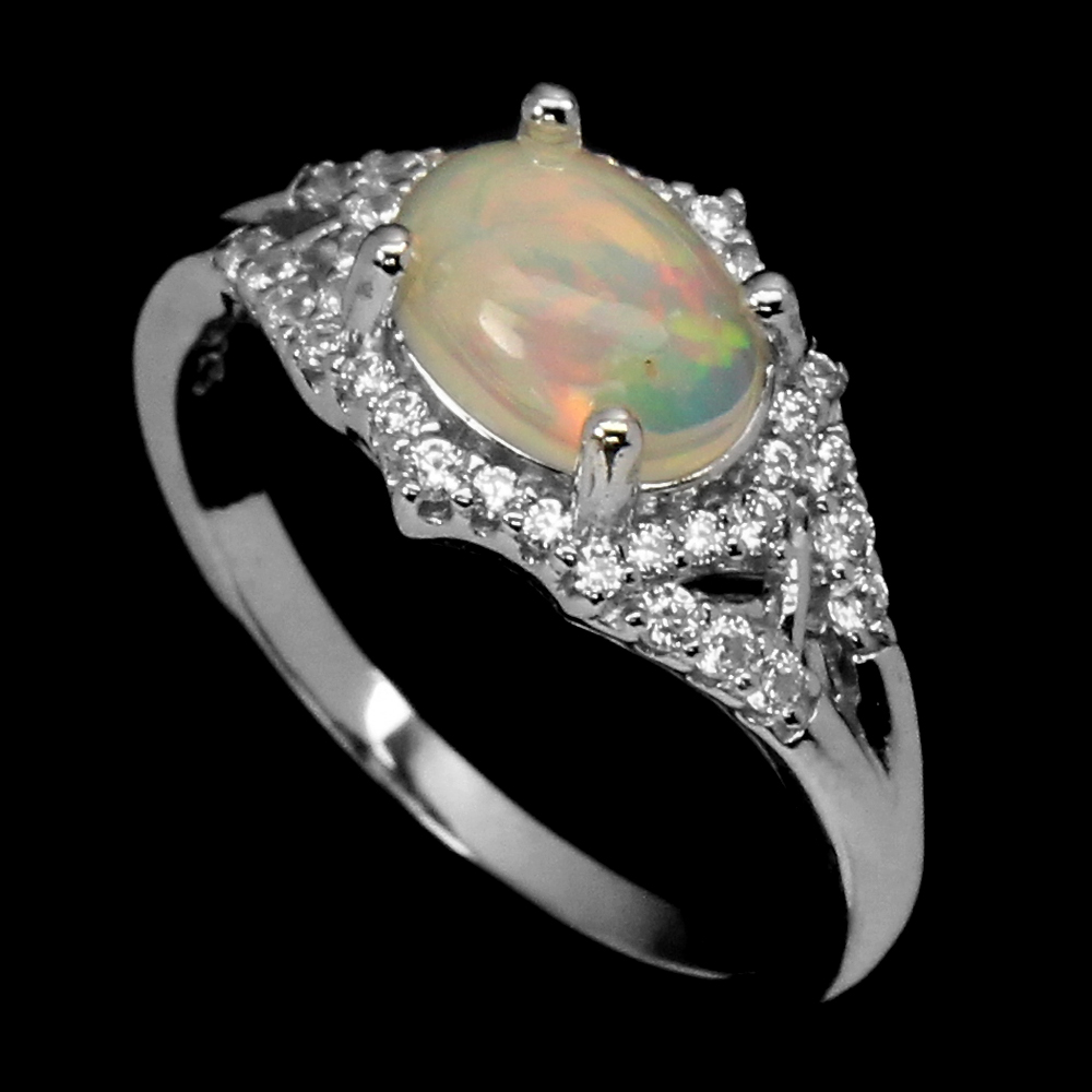 Unheated Oval Fire Opal Hot Rainbow Luster 8x6mm Cz 925 Sterling Silver Ring 7