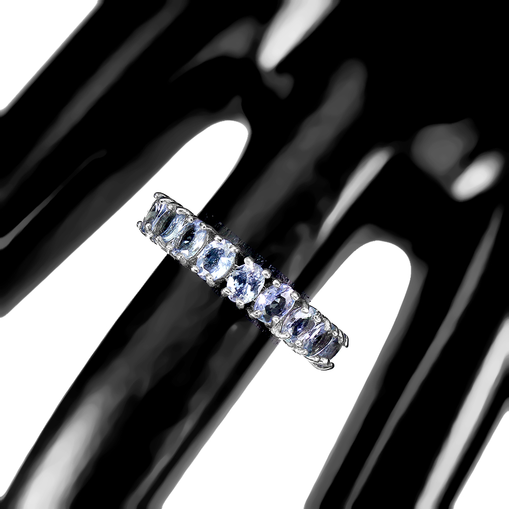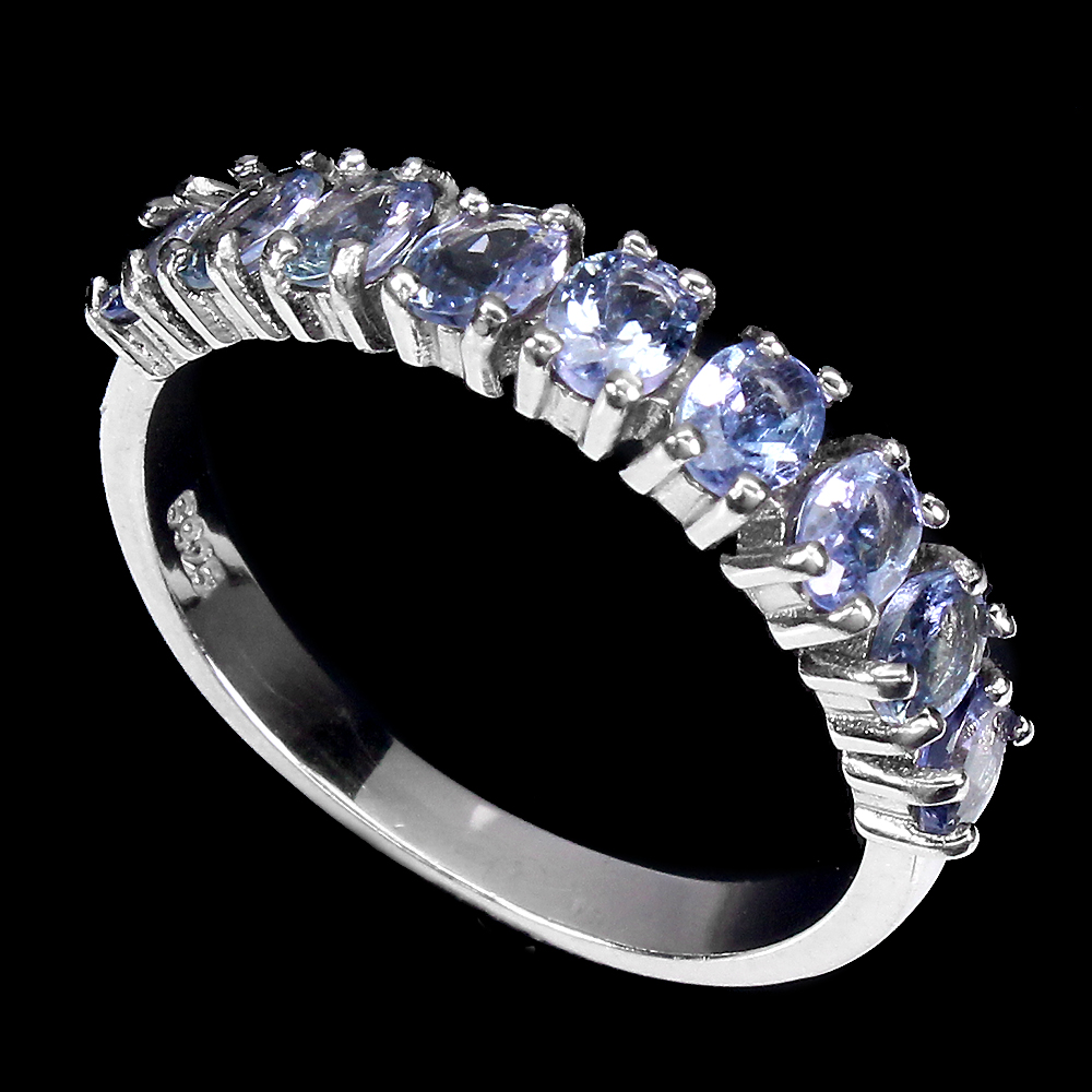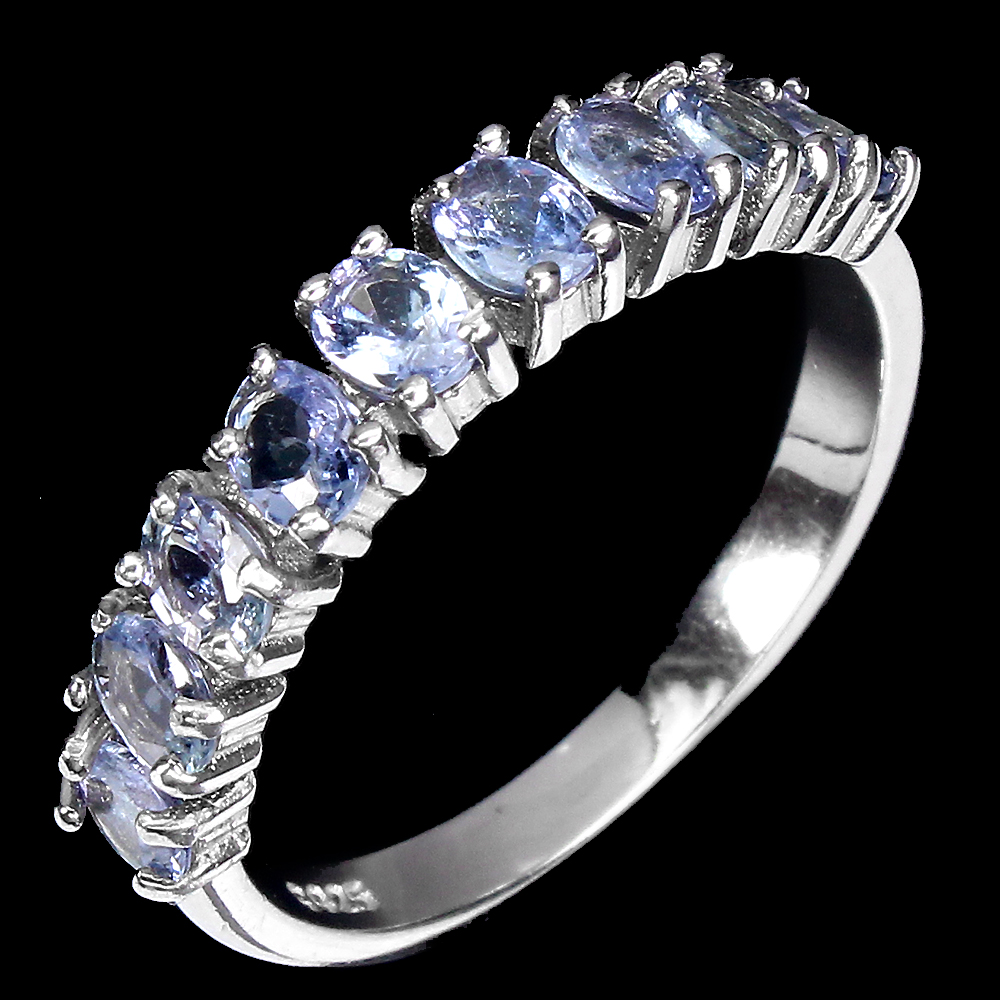 Unheated Oval Tanzanite 4x3mm 14K White Gold Plate 925 Sterling Silver Ring 8.5