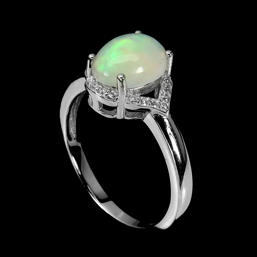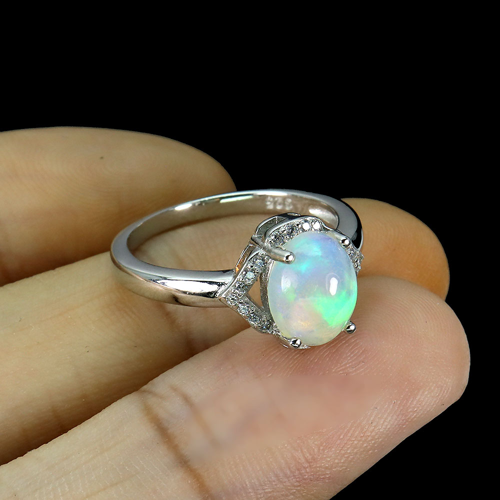 Unheated Oval Fire Opal Rainbow 9x7mm Simulated Cz 925 Sterling Silver Ring 7