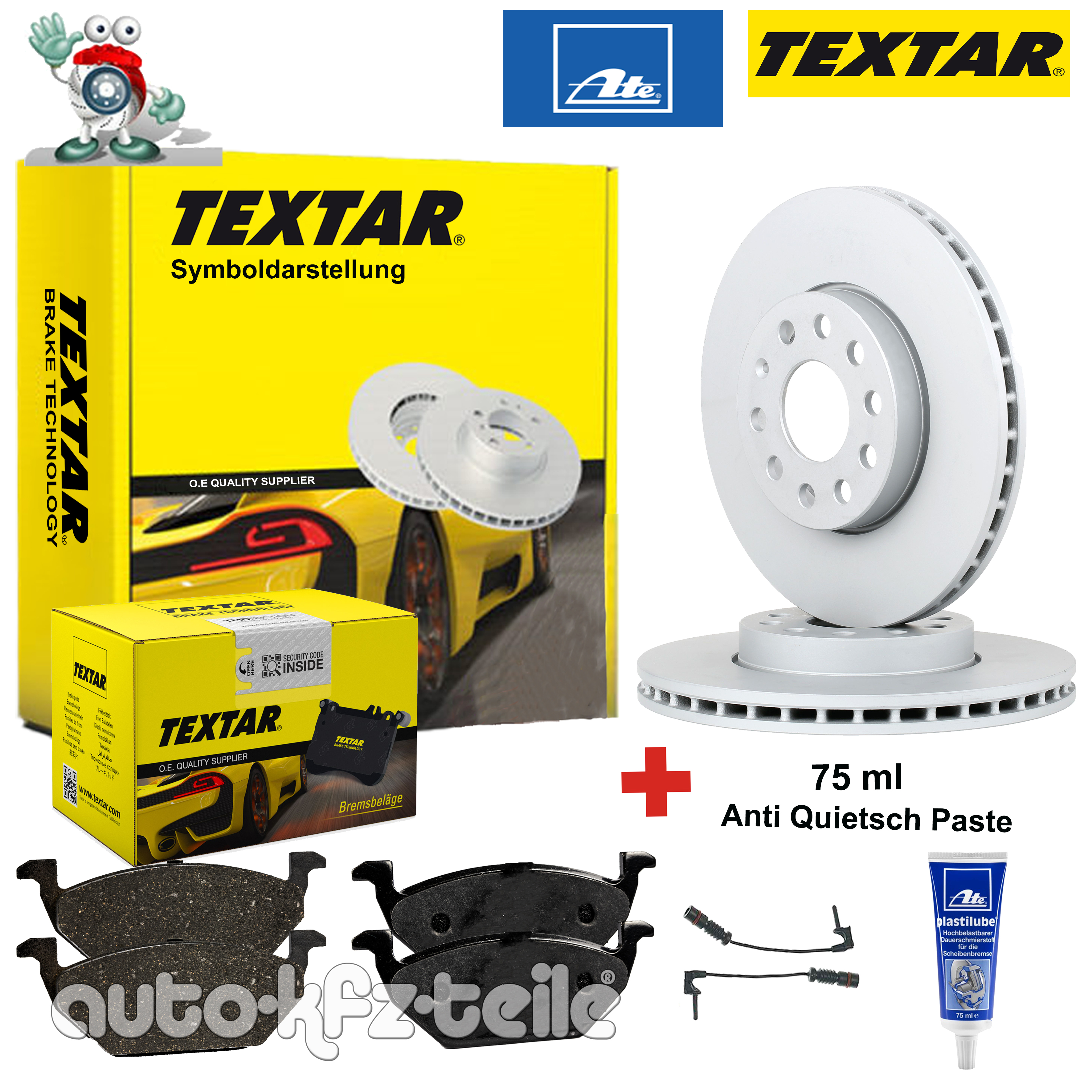 TEXTAR Bremsensatz Peugeot 406 (8B) Ø283mm Vorn + Plastilube