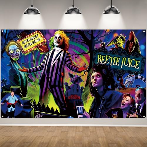 Scary Creepy Halloween Photo Backdrop Classic Movie Role Beetlejuice Banner Horror Party Decorations and Supplies for Home
