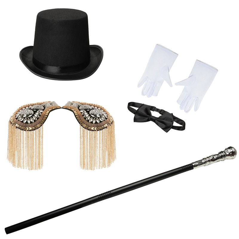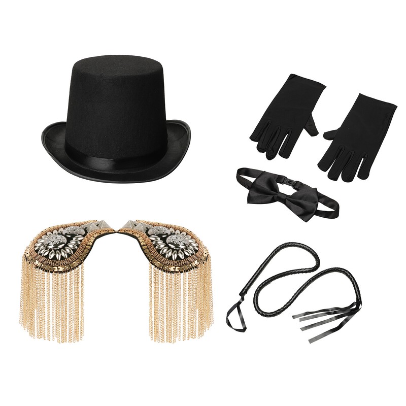 US Unisex Gloves Bowtie Top Hat Whip and Tassel Epaulets Costume Props Halloween