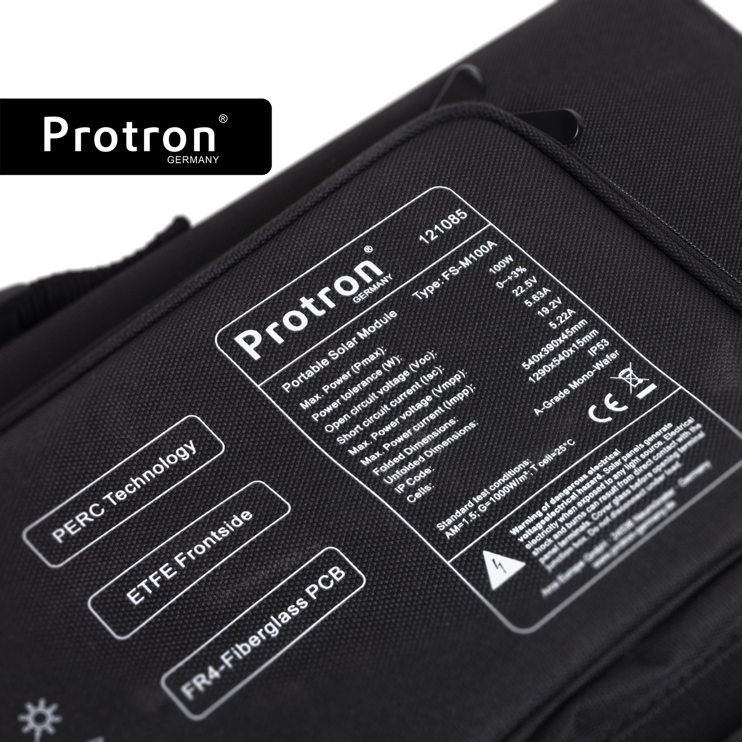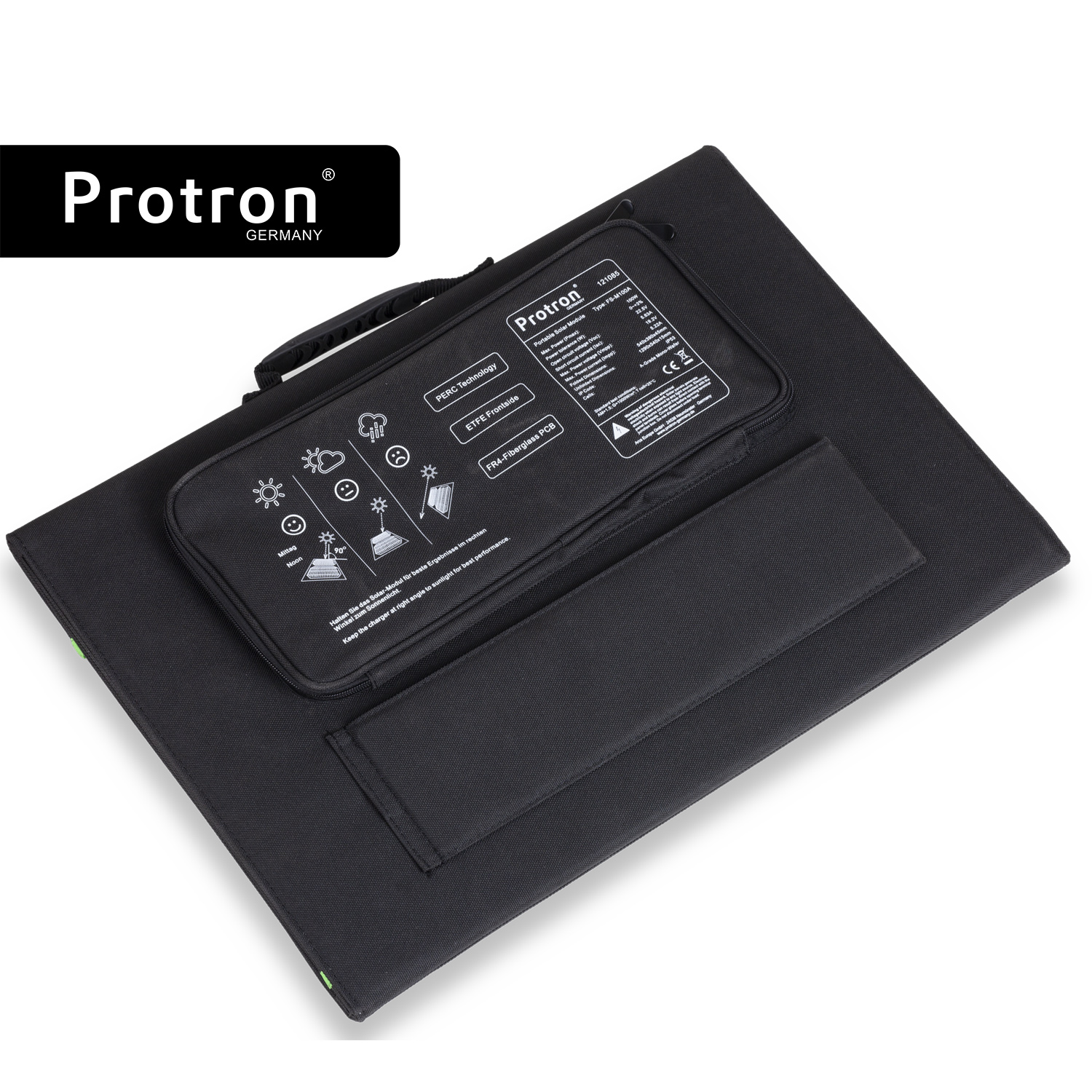 Die falt- und tragbaren Solarmodule von Protron sind universell einsetzbar für Camping, Caravaning und die meisten Outdoor-Aktivitäten. Dieses Produkt besteht aus hocheffizienten monokristallinen Zellen, die die Effizienz von Solarmodulen verbessern.