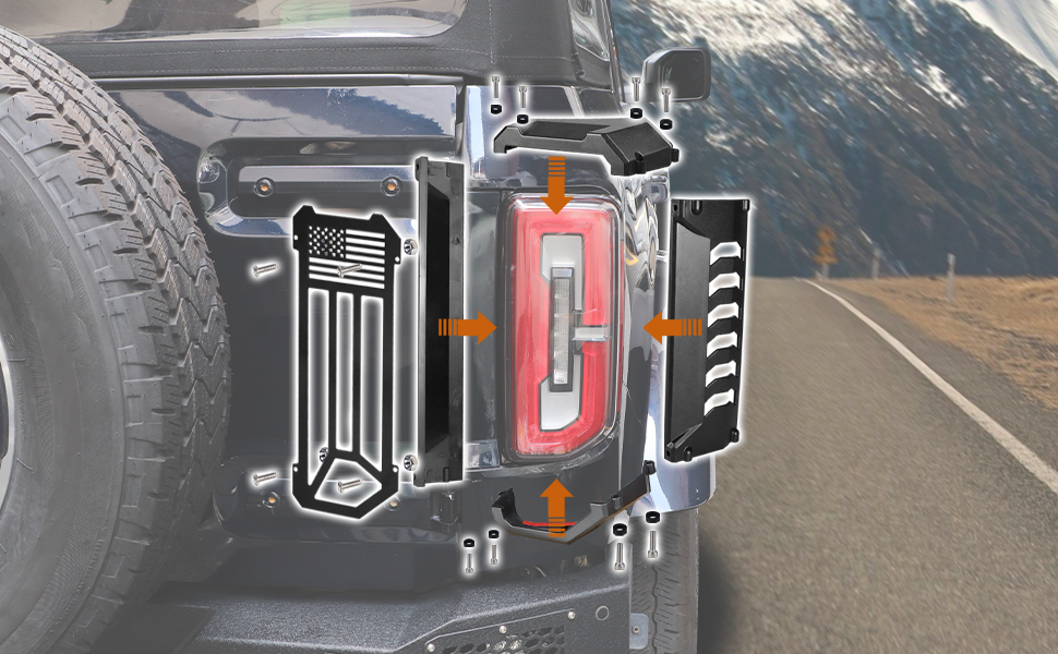 | 1 Pair Rear Tail Light Lamp Cover Trim Aluminium For Ford Bronco 2021-2024 Black |