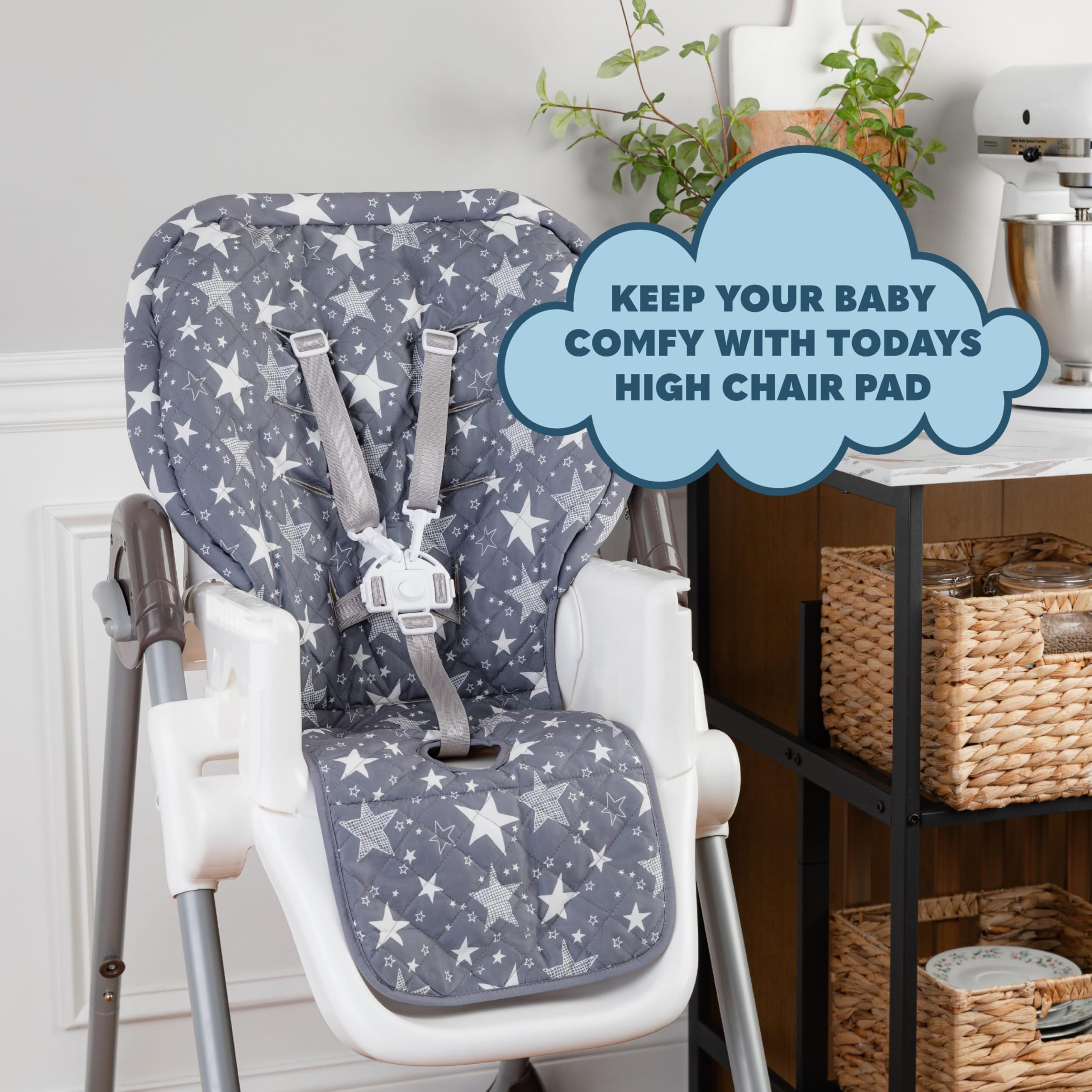 | Description: | Dive into Mealtime Magic with Todays Kids Transform every feeding session into a cozy and delightful experience with this High Chair Pad & Cover from Todays Kids. Imagine your little one snuggled in a plush, cloud-like seat, making every bite of their meal a pleasure. As a high chair cover replacement, this highchair cover for baby turns mealtime into a memorable occasion, offering unparalleled comfort and making your baby’s happiness a top priority. Designed for maximum coziness, it ensures that both you and your baby can enjoy a relaxed, joyful dining experience together. Snug as a Bug Security and versatility come together with our high chair pad’s innovative design. The elastic backing and side ties ensure a snug, secure fit on most 3-5 point harness high chairs, eliminating any slippage and keeping your baby comfortably in place. Whether you’re at home or on the go, this high chair replacement cover adapts to your needs, providing consistent comfort and support for your little one wherever you are. Enjoy the blend of practicality and luxury, making every mealtime a breeze with this highchair insert. A Practical Essential for Kids Our high chair pad combines style with practicality, offering a sleek design that fits seamlessly into your daily routine. Installation is a breeze, and with its easy-to-remove feature, you’ll find setup and cleanup to be straightforward and stress-free. The pad’s machine-washable fabric means you can tackle spills and messes with ease, keeping your baby's dining space fresh and clean without any hassle. Give your little one the comfort they deserve and make mealtime a family bonding time!