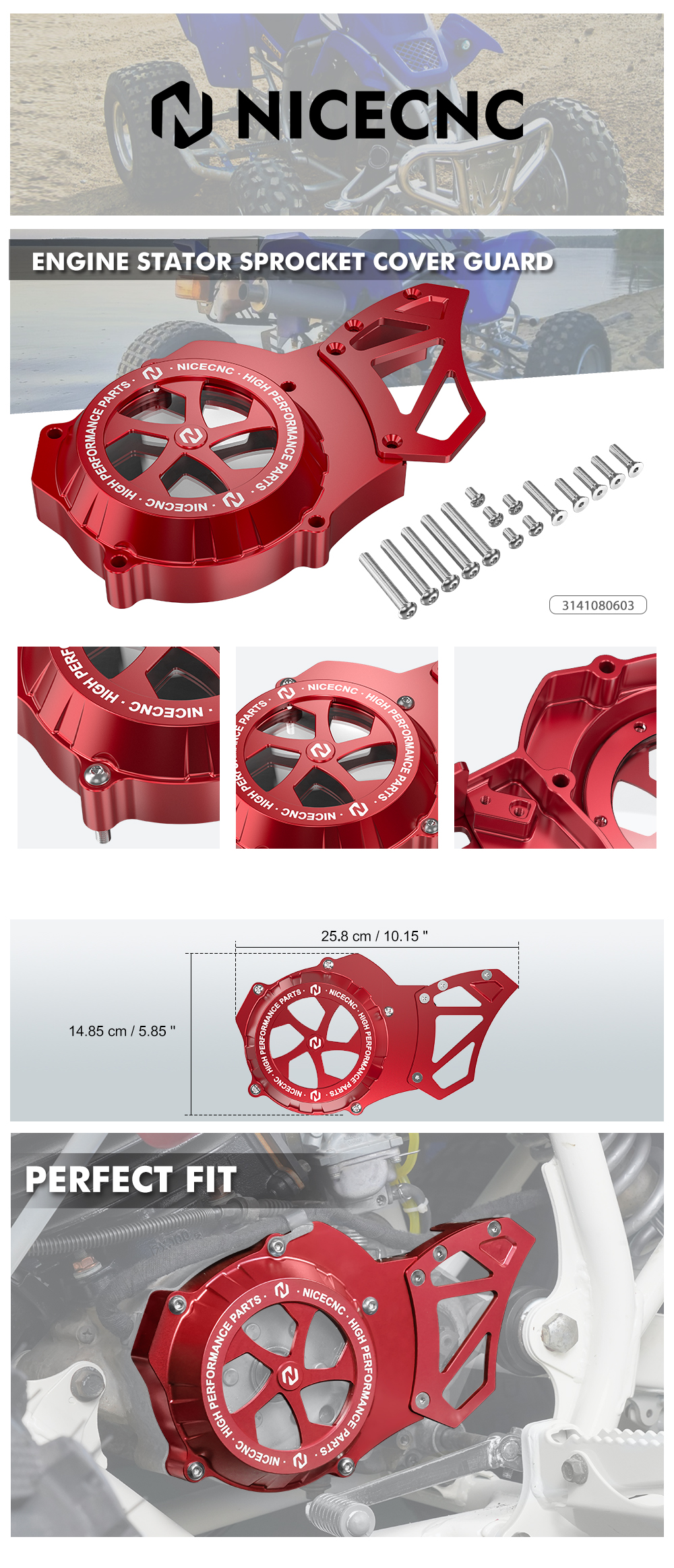 【Aircraft-grade T6-6061 Aluminum】Made from premium aluminum for great lightness and sturdiness. Effectively protect your stator and sprocket from damage in the event of collision.