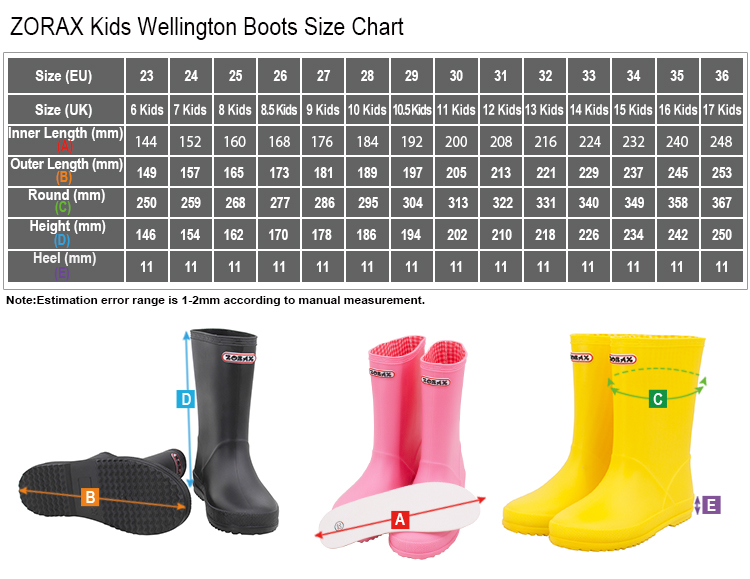 - Wellington boot styling with Zorax logos