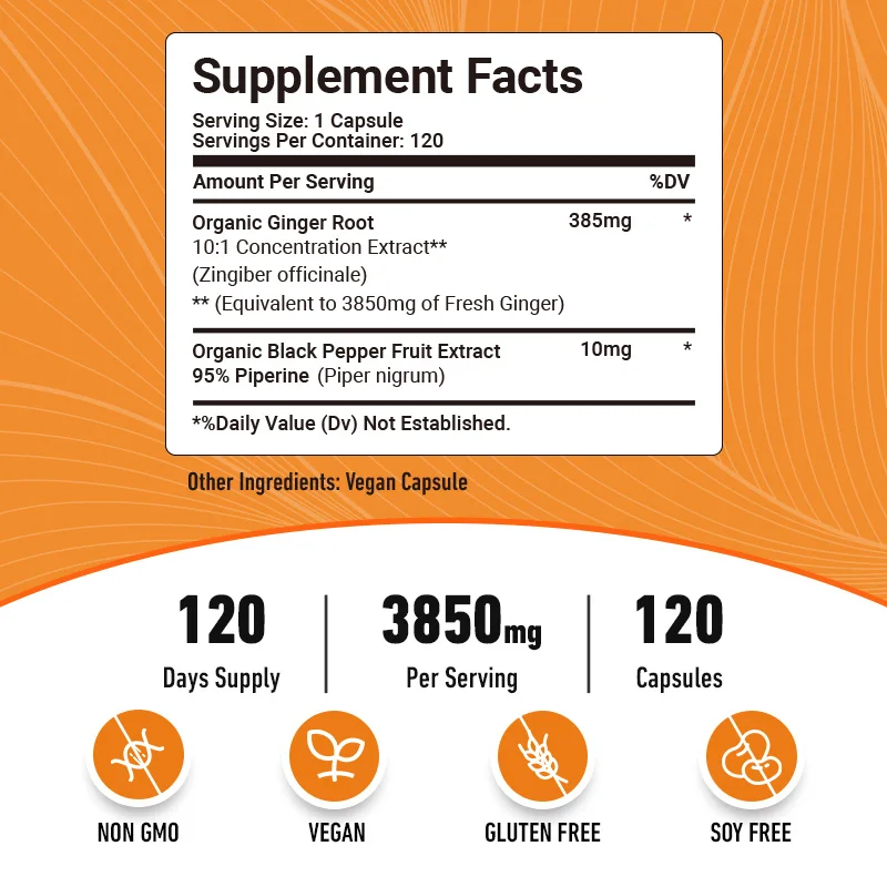 High Absorption: Our ginger capsules contain black pepper extract to help improve absorption, making it more effective in supporting your health and well-being.