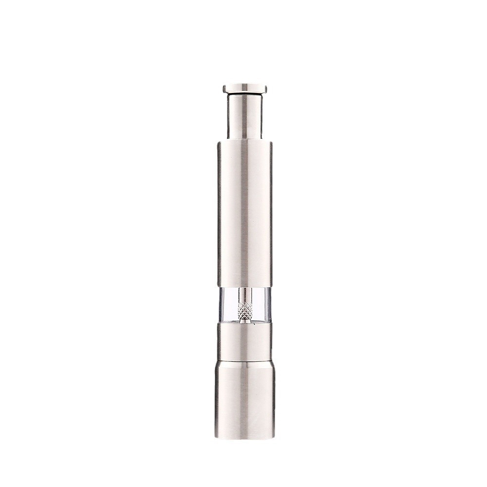 1XPepper Salt Spice Grinder Mill One Hand Thumb Push Pepper Mill Silver Kitchens