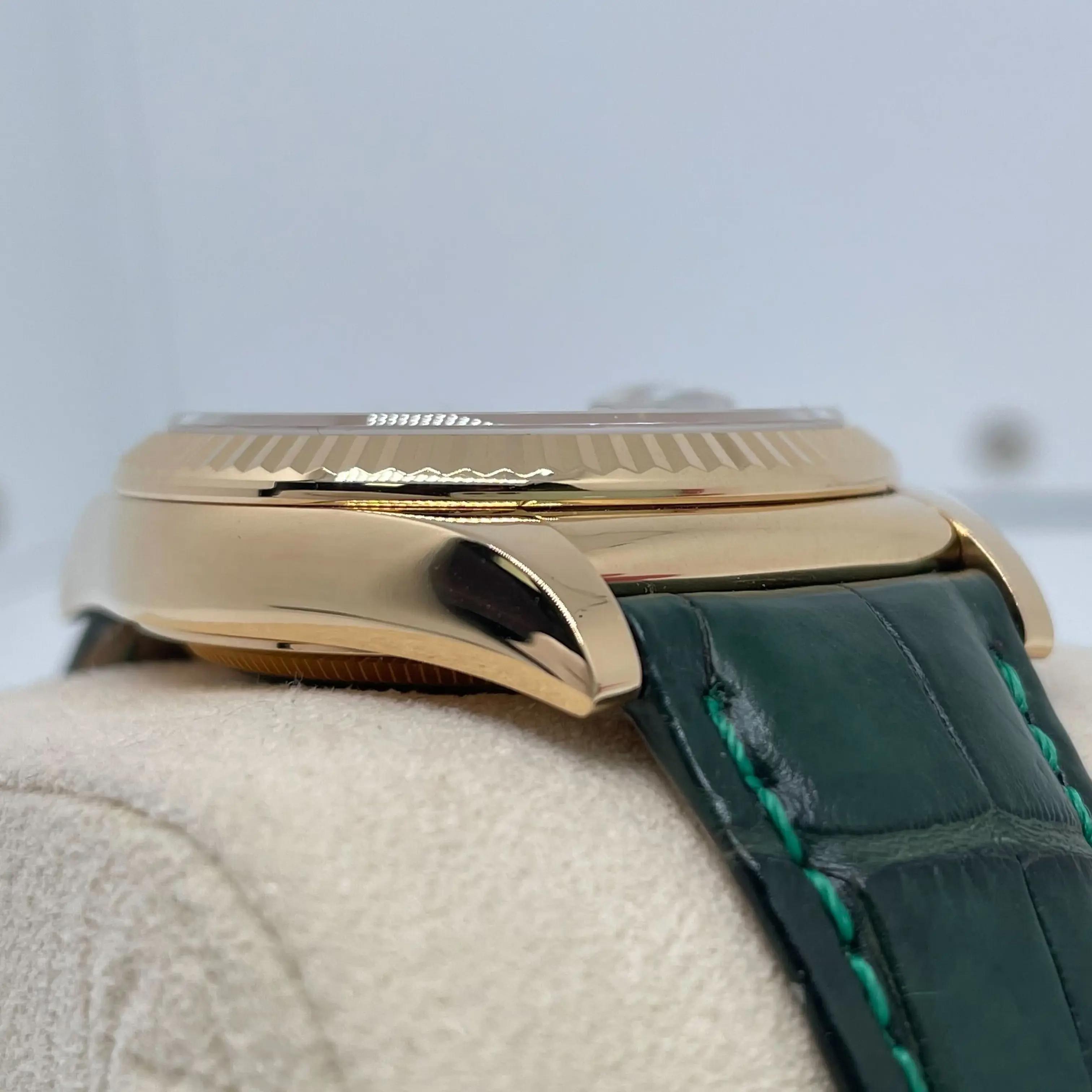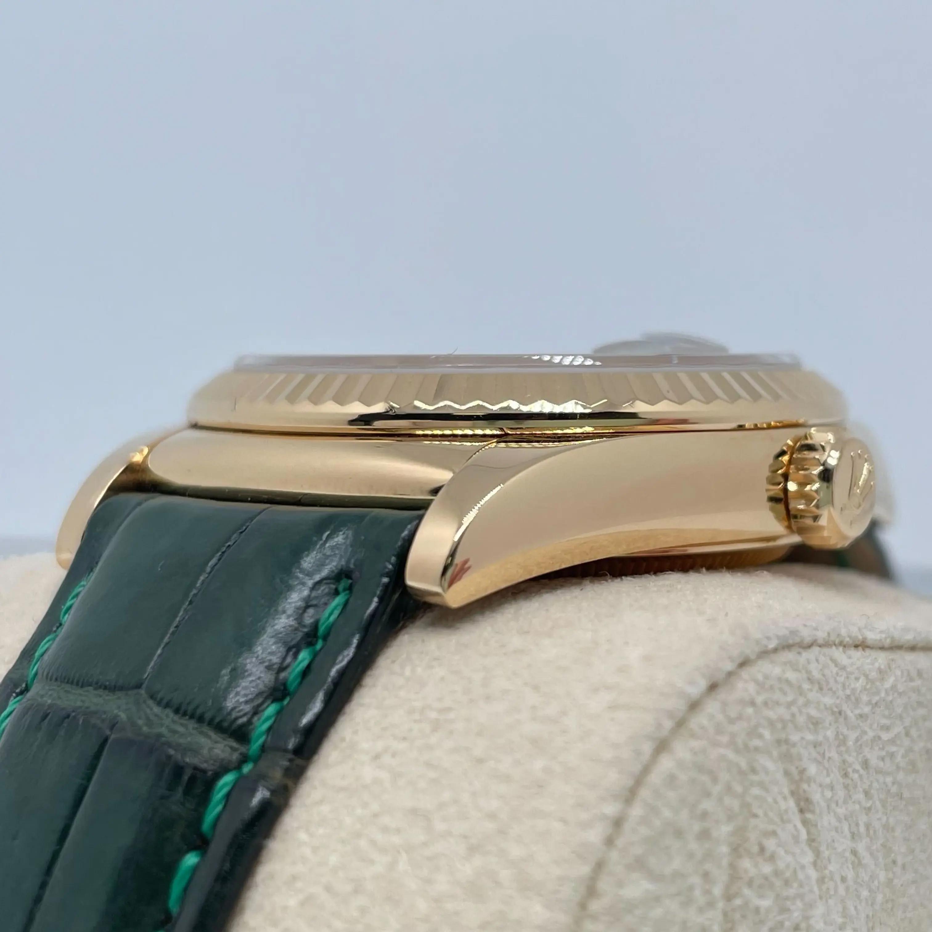 Mint Rolex 118138 Day-Date 36mm 18k Yellow Gold Leather Green Watch