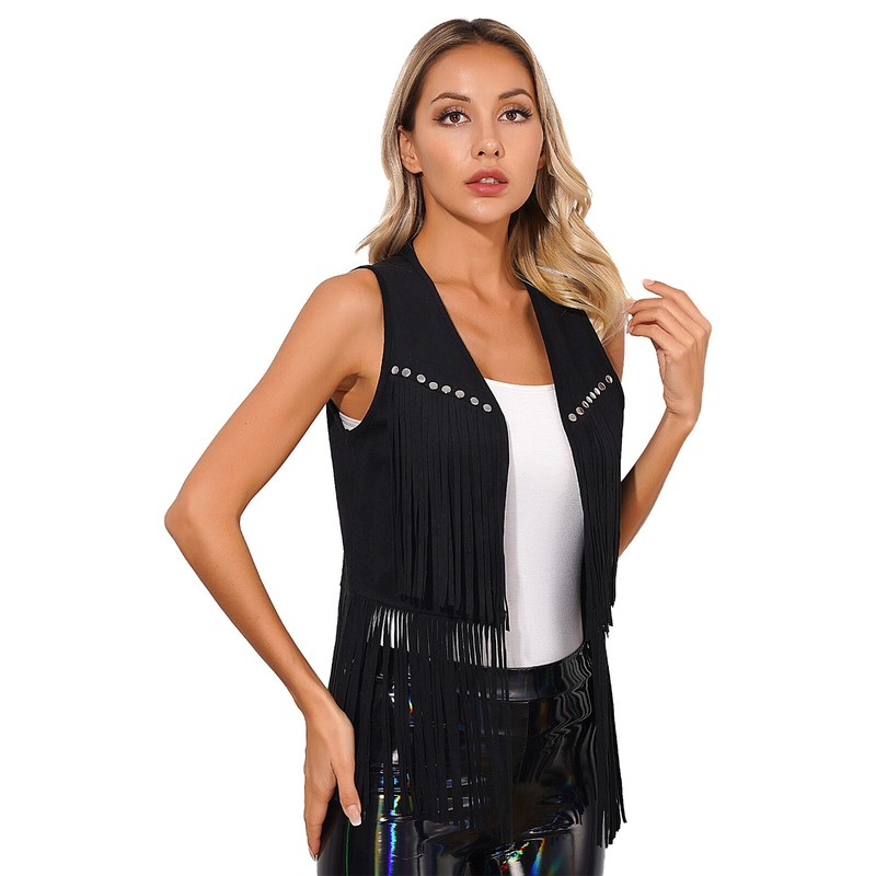 This fringe vest can be worn with a white shirt, tank top, cargo pants or ripped skinny jeans for a stylish look.