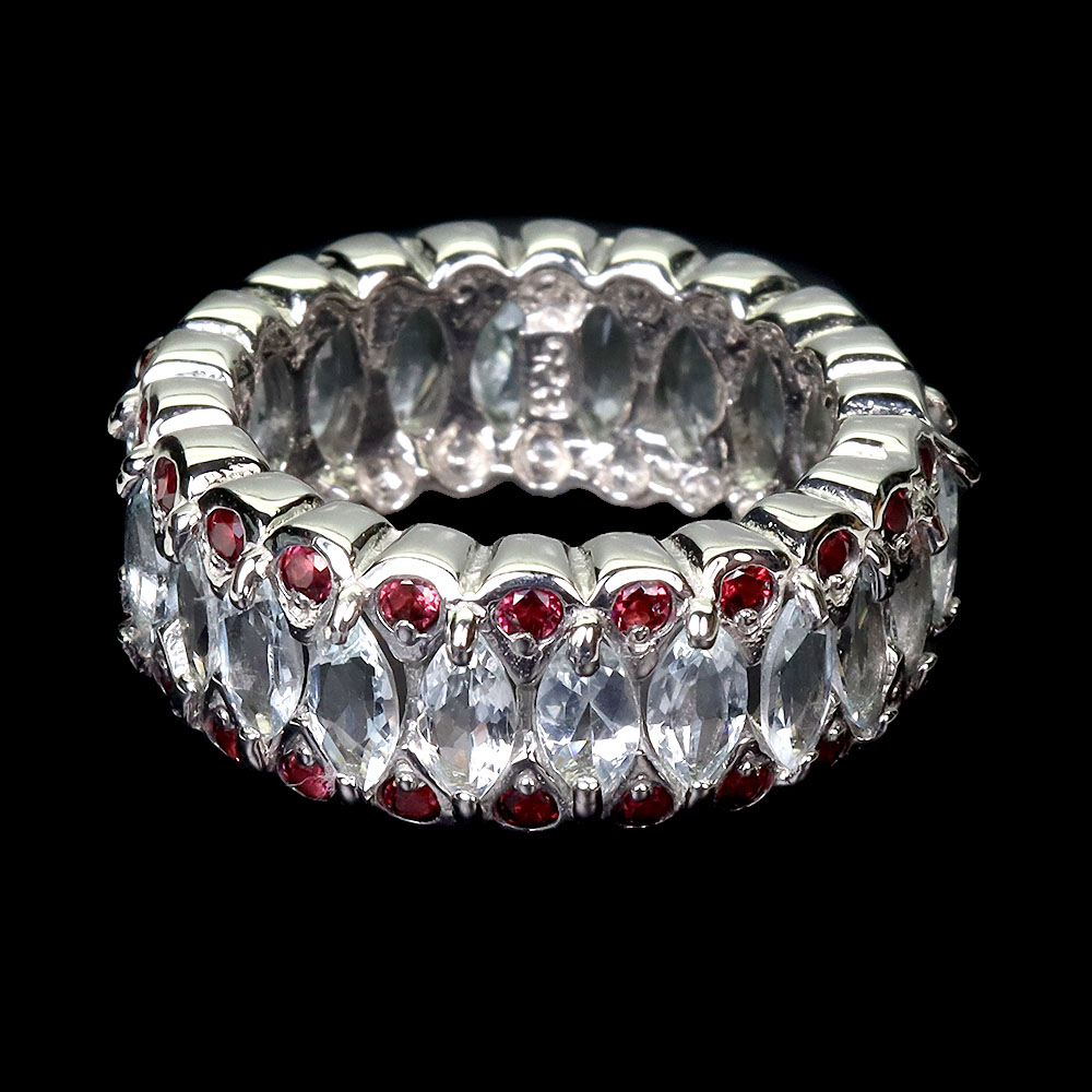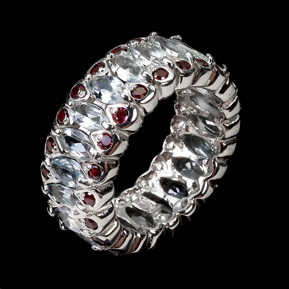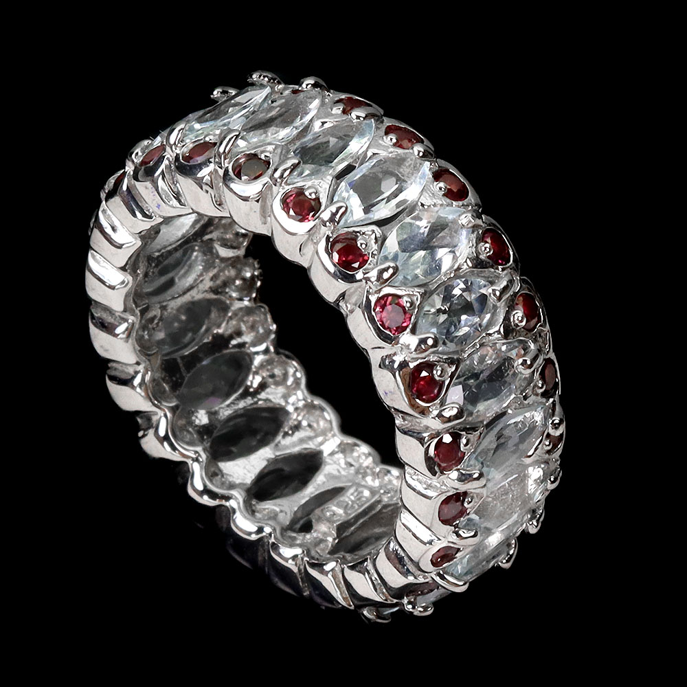 925 Sterling Silver Ring Marquise Aquamarine Rhodolite Garnet Gemstone Jewelry