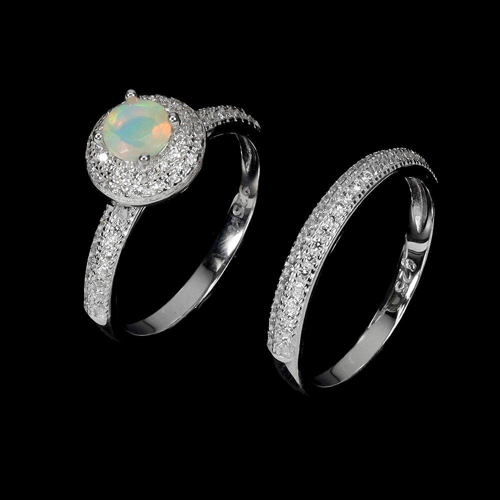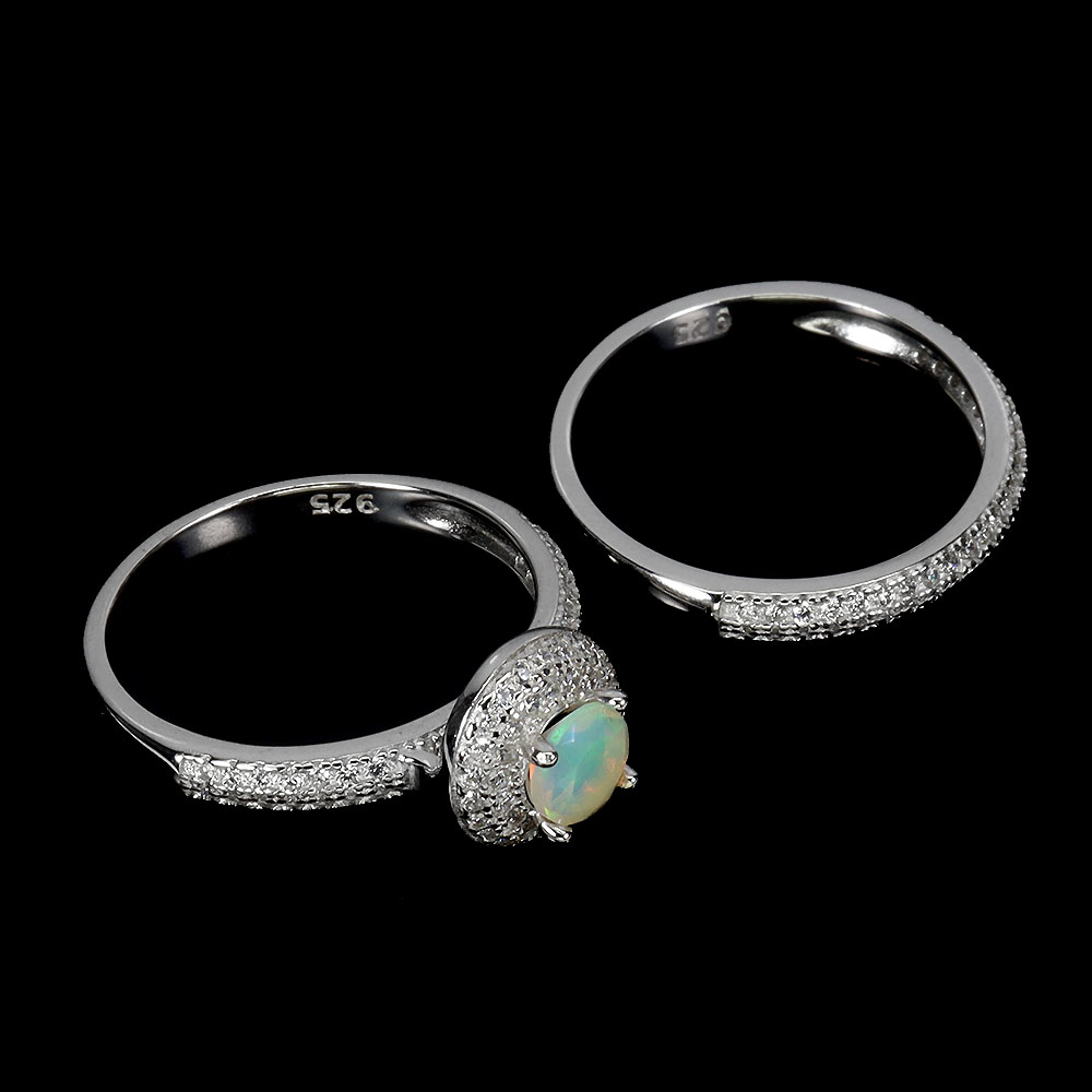 925 Sterling Silver Ring Round Fire Opal 5mm Gemstone Jewelry Matching Size 8