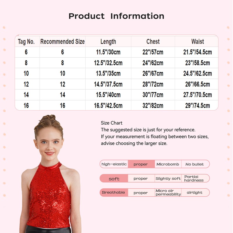 The lining of sequin crop top is made of soft fabric, no scratchy to girl’s skin, breathable and comfortable to wear.