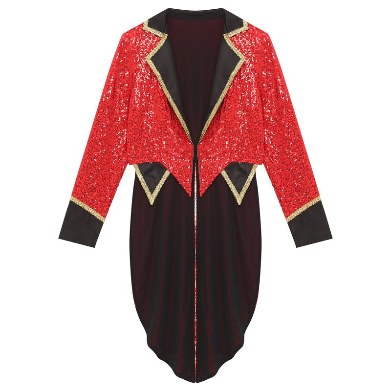 Ringmaster outerwear in bright colors brings a funny and wacky look, pairing with ruffle collar shirt, long pants would be perfect.