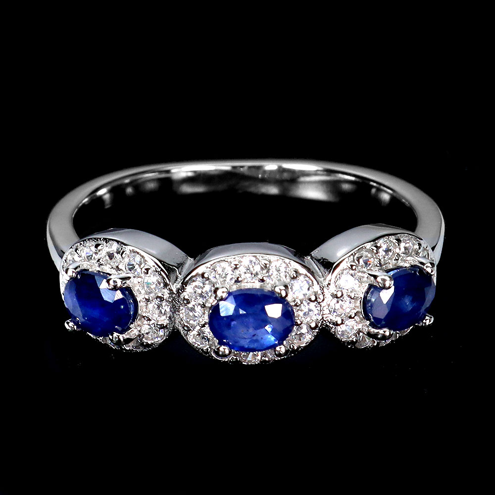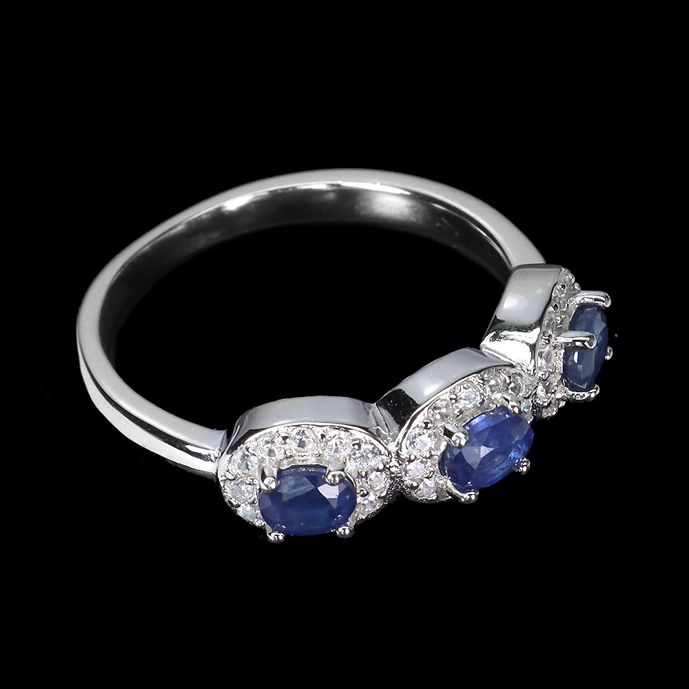 925 Sterling Silver Ring Oval Blue Sapphire Natural Gemstone Jewelry Size 7