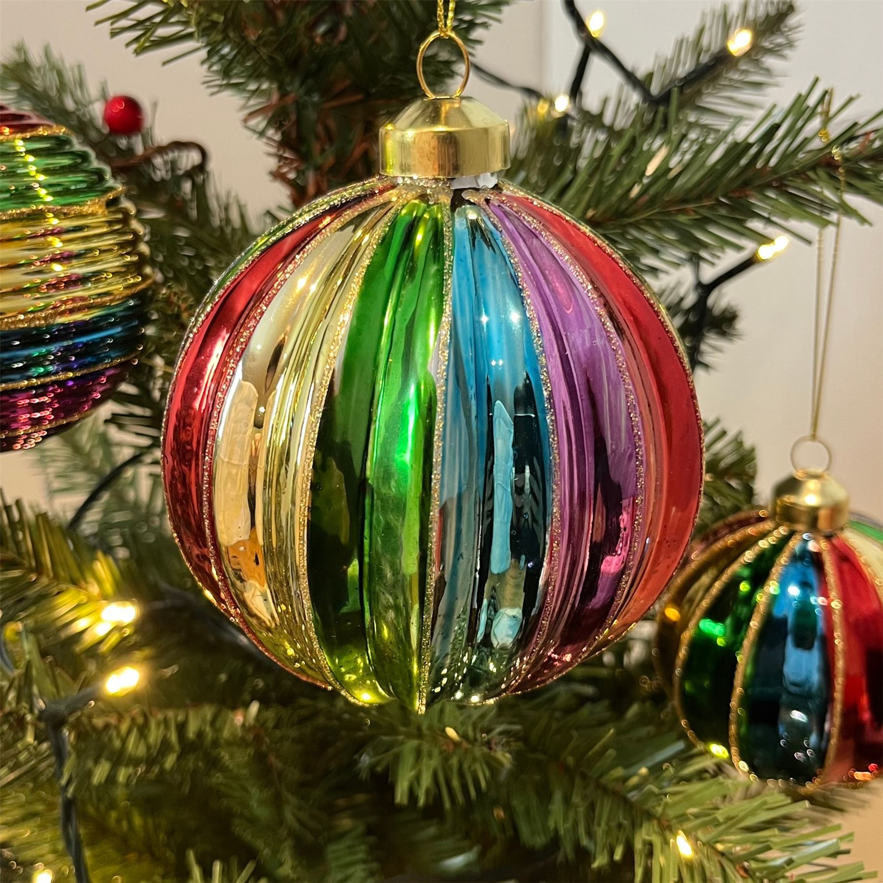 | Large Rainbow Christmas Bauble | Multicoloured Christmas Tree Ornament - 10cm |