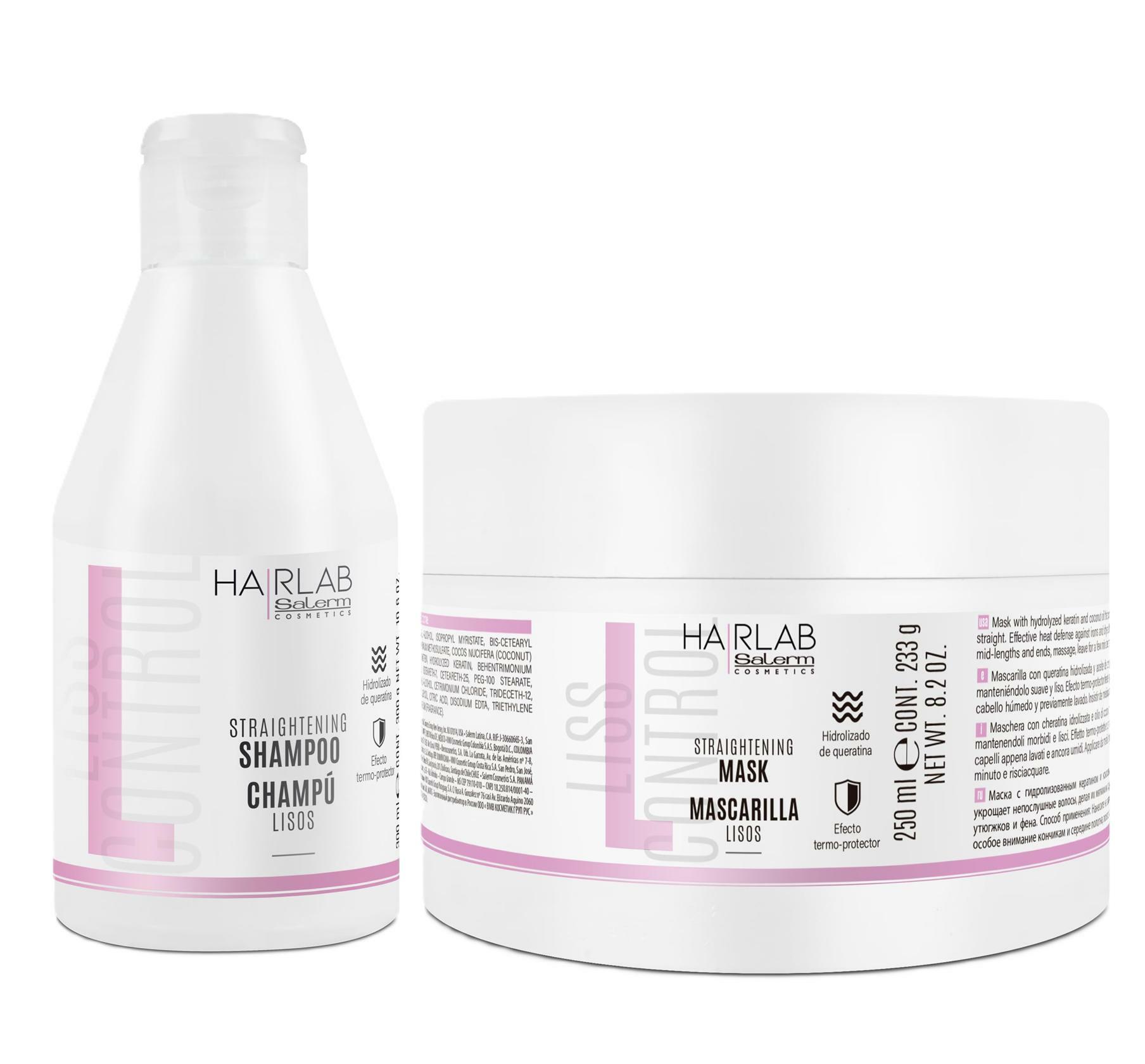 Salerm Cosmetics HAIRLAB STRAIGHTENING 2-PIECE KIT for Damage Hair, Shampoo 10.6oz + Mask 8.2oz