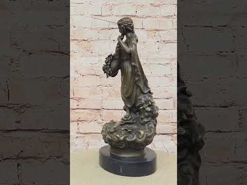 French Handcrafted Bronze Sculpture of a Woman Holding a Flower Cornucopia by Milowww.bronzhaus.com