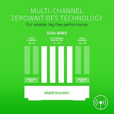 Dank Multikanal-ZeroWait DFS scannt der Razer Sila alle verfügbaren Kanäle und wechselt automatisch zum besten Kanal, damit du Datenstaus gezielt aus dem Weg gehen kannst. Er setzt auf Hardware zur Radarerkennung, die dir exklusiven Zugriff auf Frequenzen ermöglicht, die eigentlich reserviert und nicht frei zugänglich sind. Mithilfe solcher Kanäle bist du selbst zu Stoßzeiten schneller als alle anderen und genießt ein unglaublich schnelles und zuverlässiges WLAN.