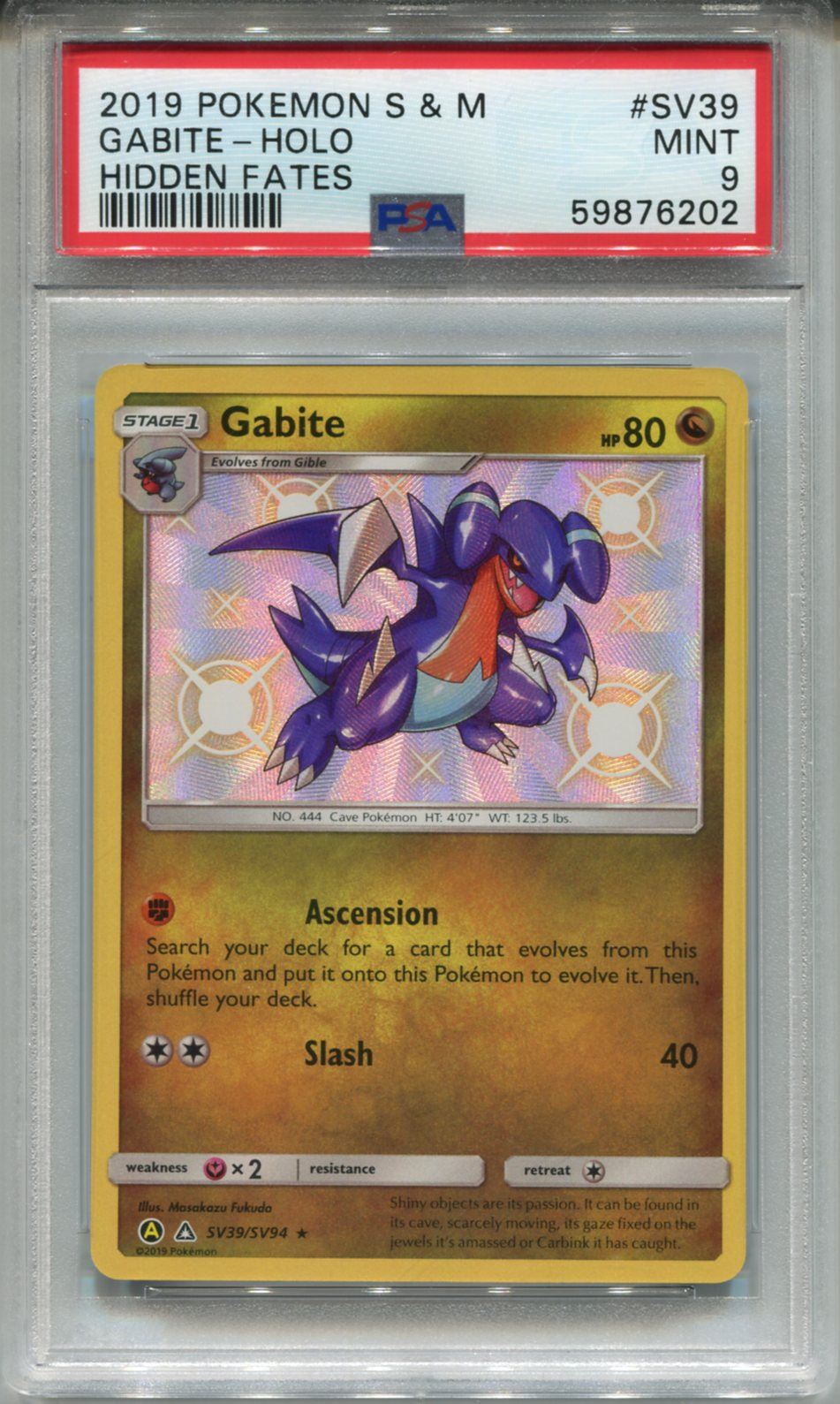 Pokemon Sun & Moon Hidden Fates Shiny Vault Card SV39 Gabite PSA 9