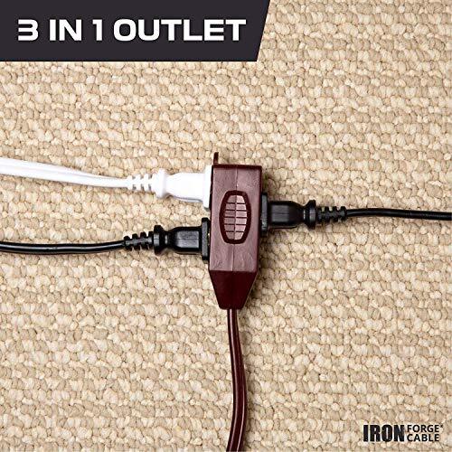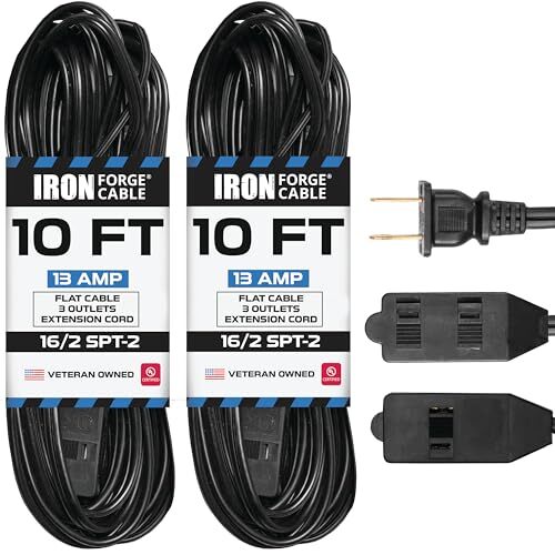 ALL PURPOSE INDOOR EXTENSION CORDS - Ideal for computers, monitors, printers, household appliances, electronics, and more.DESIGNED FOR RUGGED USE - Slip resistant design. Vinyl covering protects against abrasion and direct sunlight.REINFORCED BLADES protect prongs from bending or breaking. The black cable blends into your office’s decor.DURABLE STRAIN RELIEF for optimal performance. ETL Listed. 16 gauge, 2 prong, 10 foot, 13 amp, 125V, 1625 watt. Temperature Range: -40°F to +140°FLIFETIME REPLACEMENT WARRANTY - Iron Forge Cable stands behind all of its extension cords 100%. Register online for a free lifetime warranty.