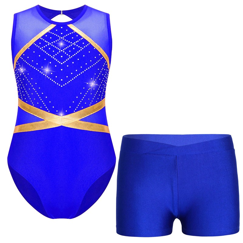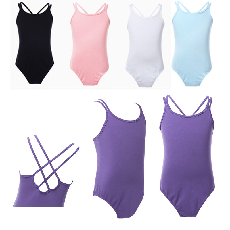 Sleeveless leotard for girls, keyhole back and round neck with a clasp for easy wearing and taking off.