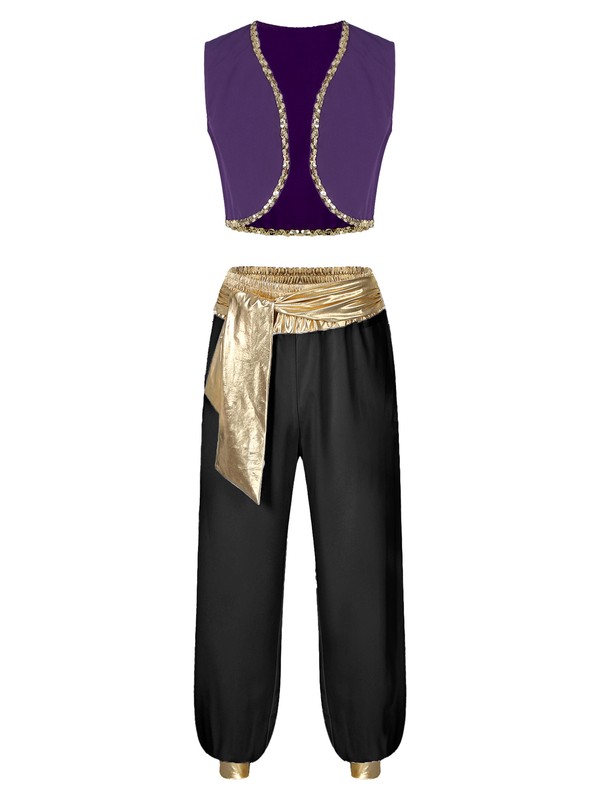 Mens Halloween Costume Role Play Stage Performance Outfit Sequin Trim Waistcoat with Belted Pants.