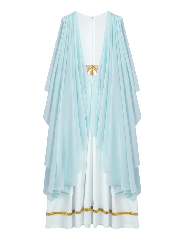 Girls ancient greek costume, v neck, sleeveless, high waist flowy tulle dress.