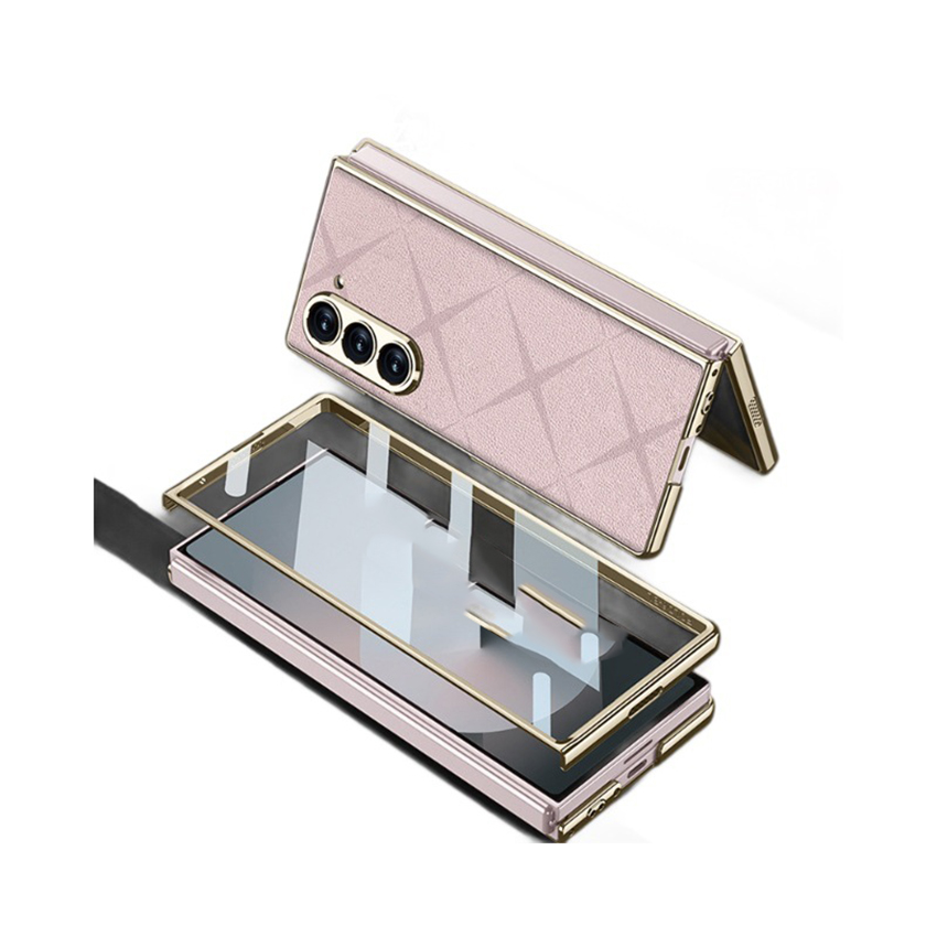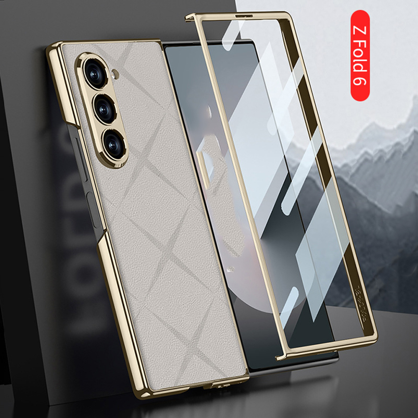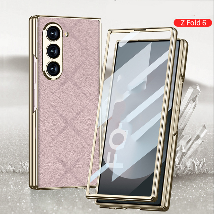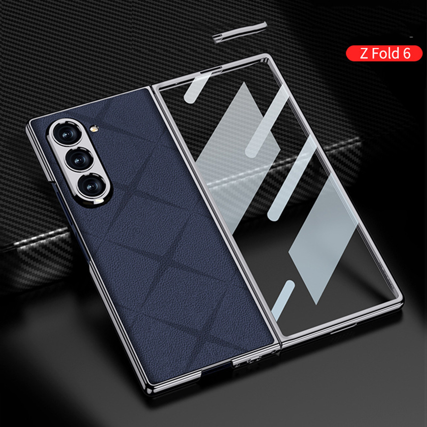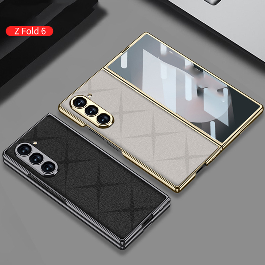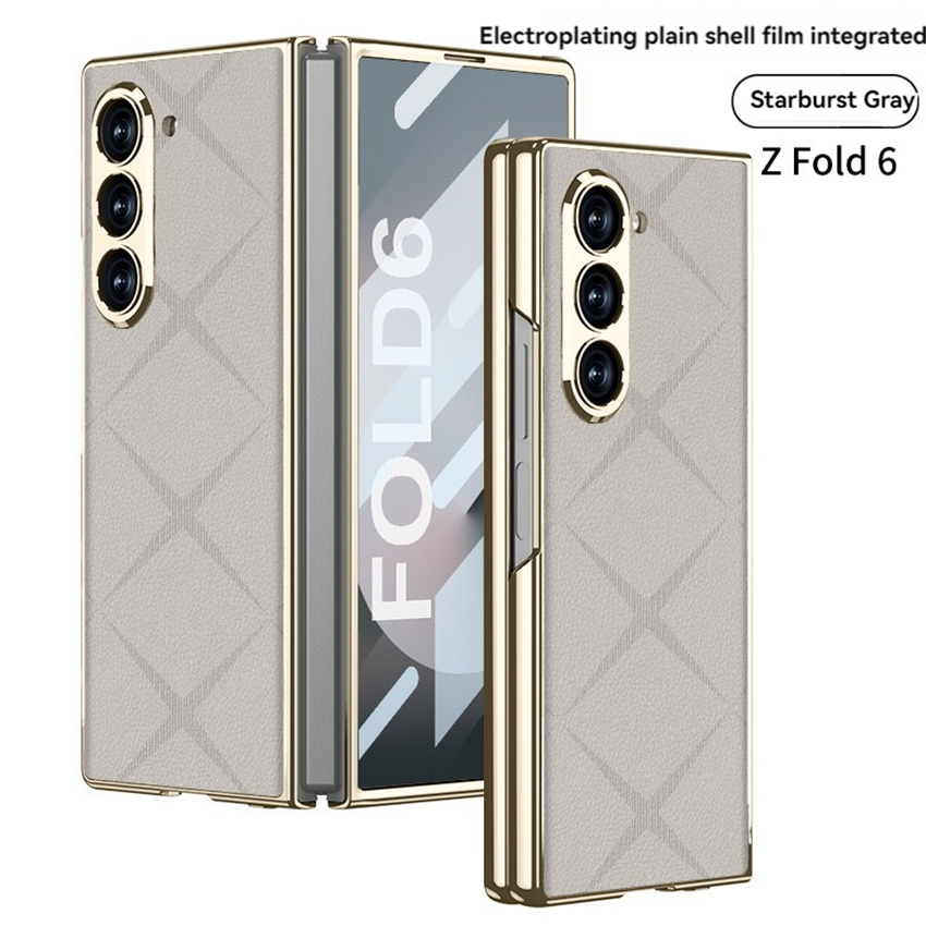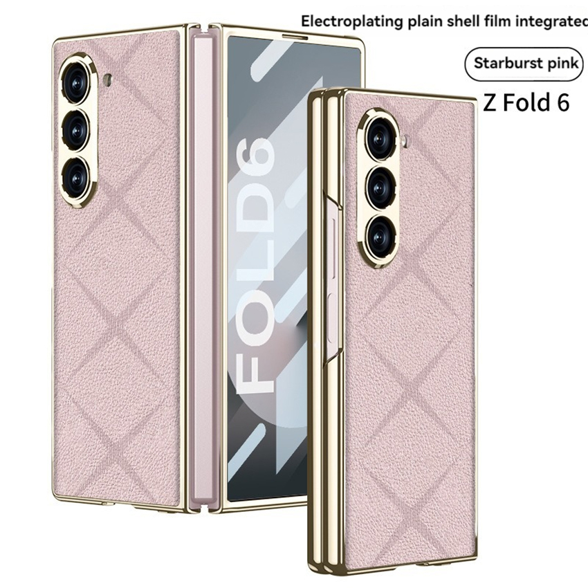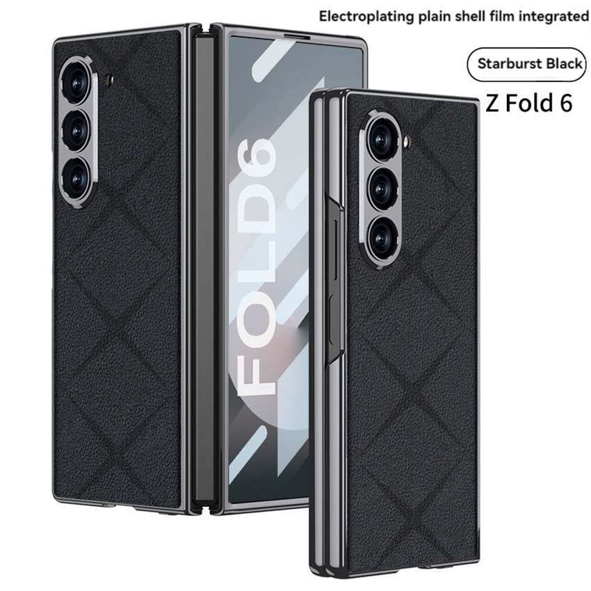 Phone Case Folding Screen Electroplating Vegan Leather Starmine Simple Style Protective Case for Samsung ZFold6