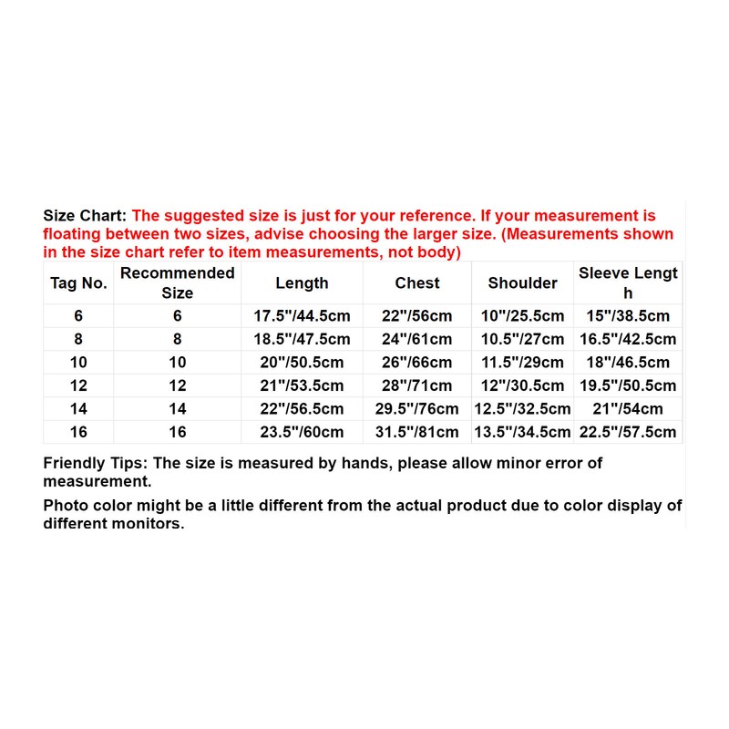 Friendly Tips: The size is measured by hands, please allow minor error of measurement. Photo color might be a little different from the actual product due to color display of different monitors.