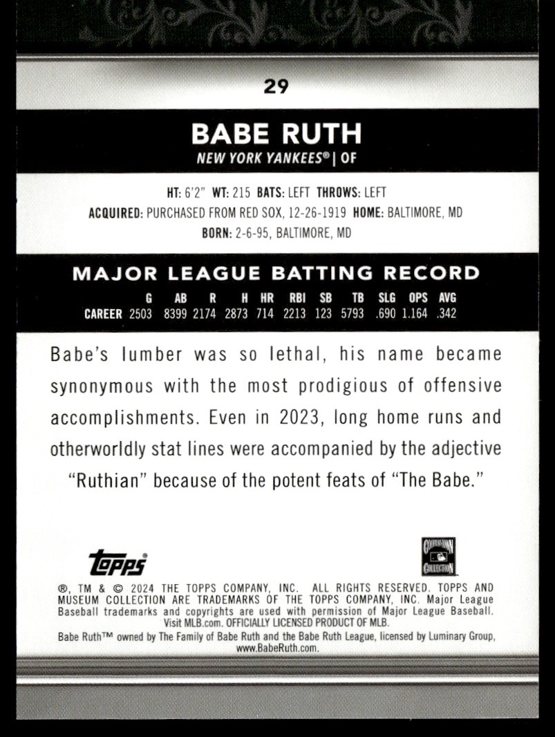 2024 Topps Museum Collection Copper Babe Ruth (C) New York Yankees #29