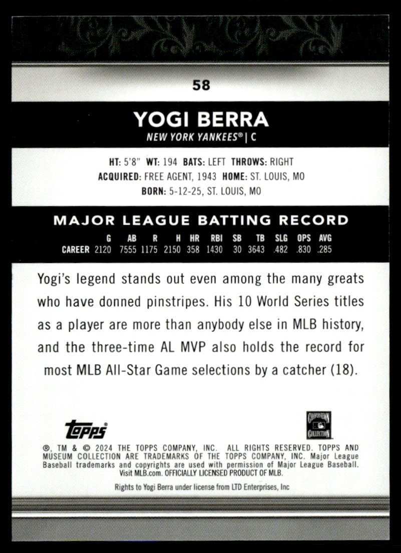2024 Topps Museum Collection Yogi Berra (C) New York Yankees #58